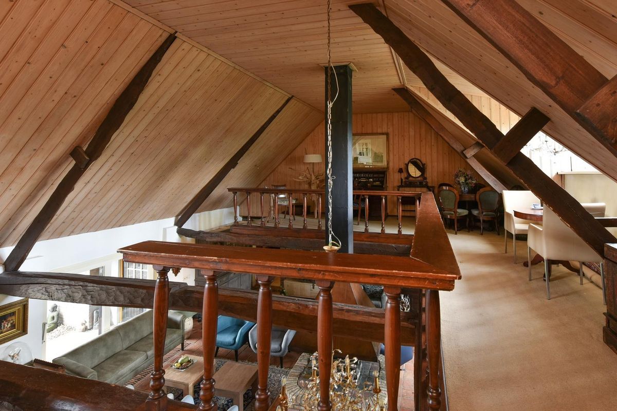 De verdieping van deze woonboerderij is zowel bereikbaar via een vaste trapopgang naar de vide vanuit de woonkamer als via een afgesloten trapopgang in de werk-/slaapkamer.