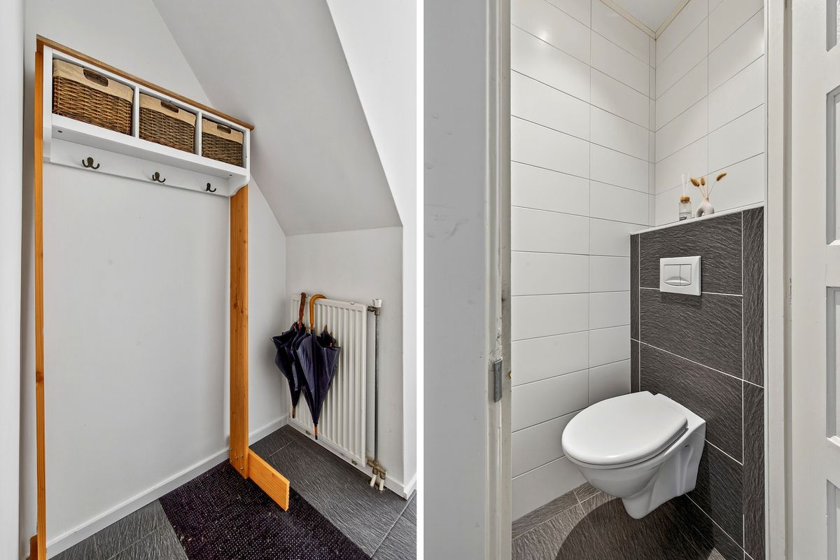 Via de eigen entree stap je de hal binnen. Hier vind je direct aan de rechterzijde een separaat toilet.