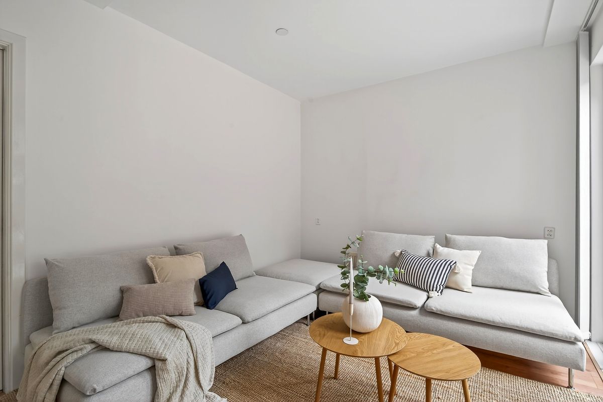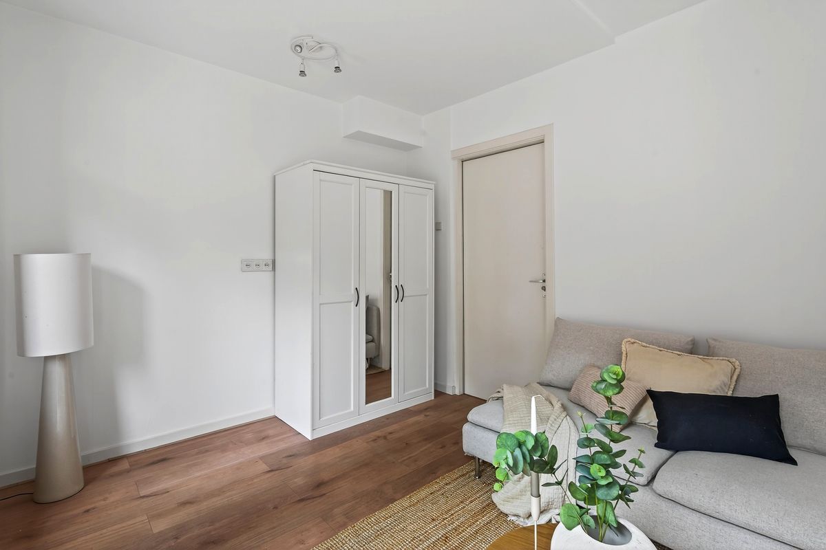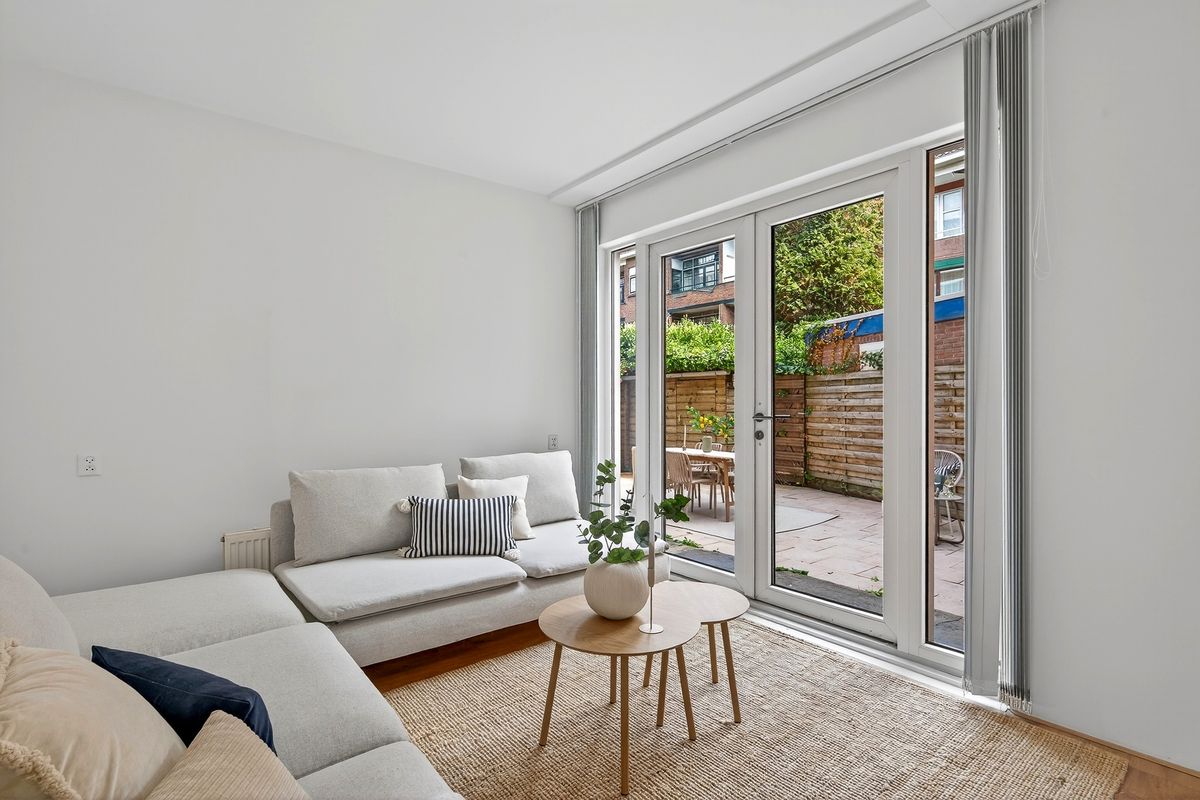 Vanuit de eetkamer loop je door naar de lichte woonkamer. De grote ramen zorgen voor veel daglicht en via de openslaande deuren stap je zo de tuin in. Dit maakt de woonkamer tot een heerlijke plek om te ontspannen.