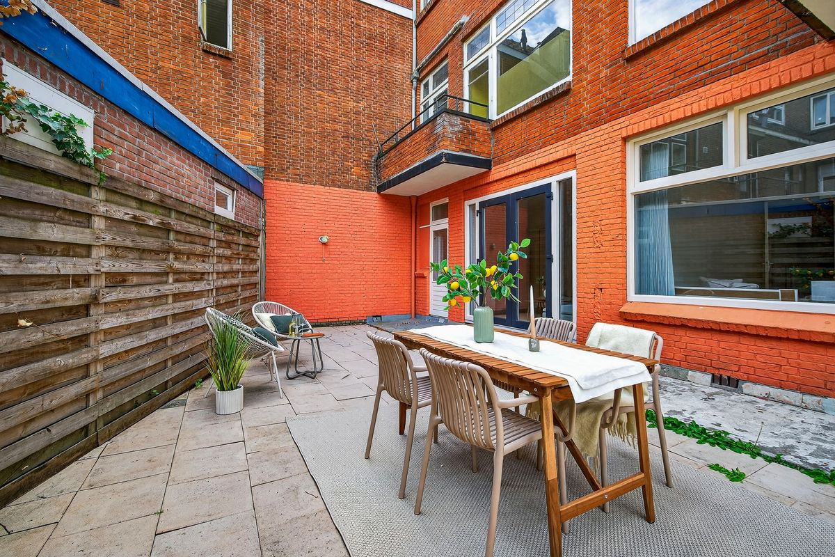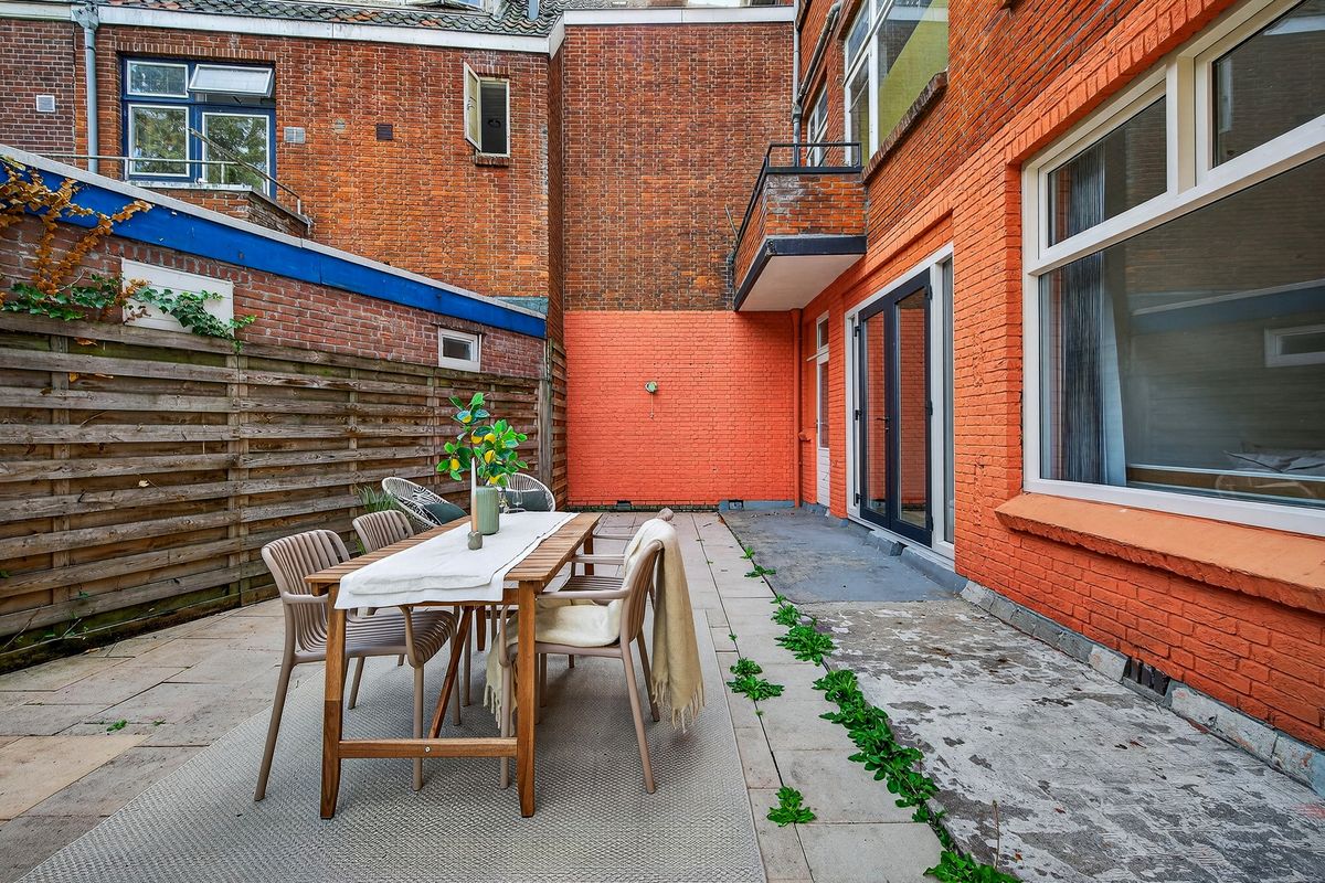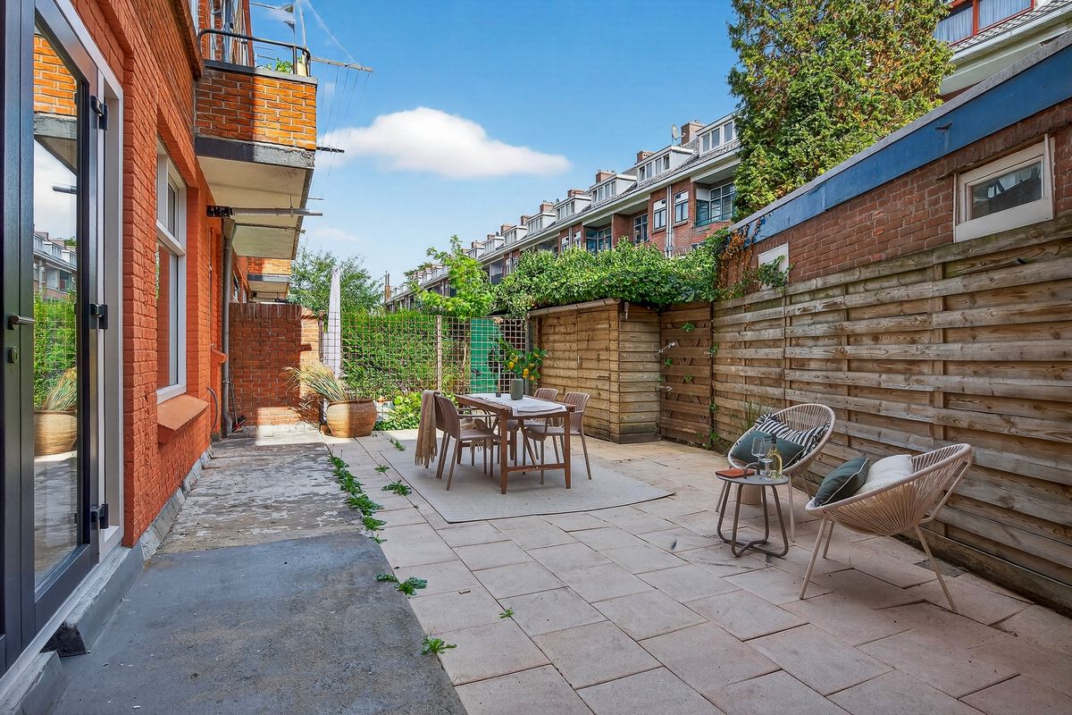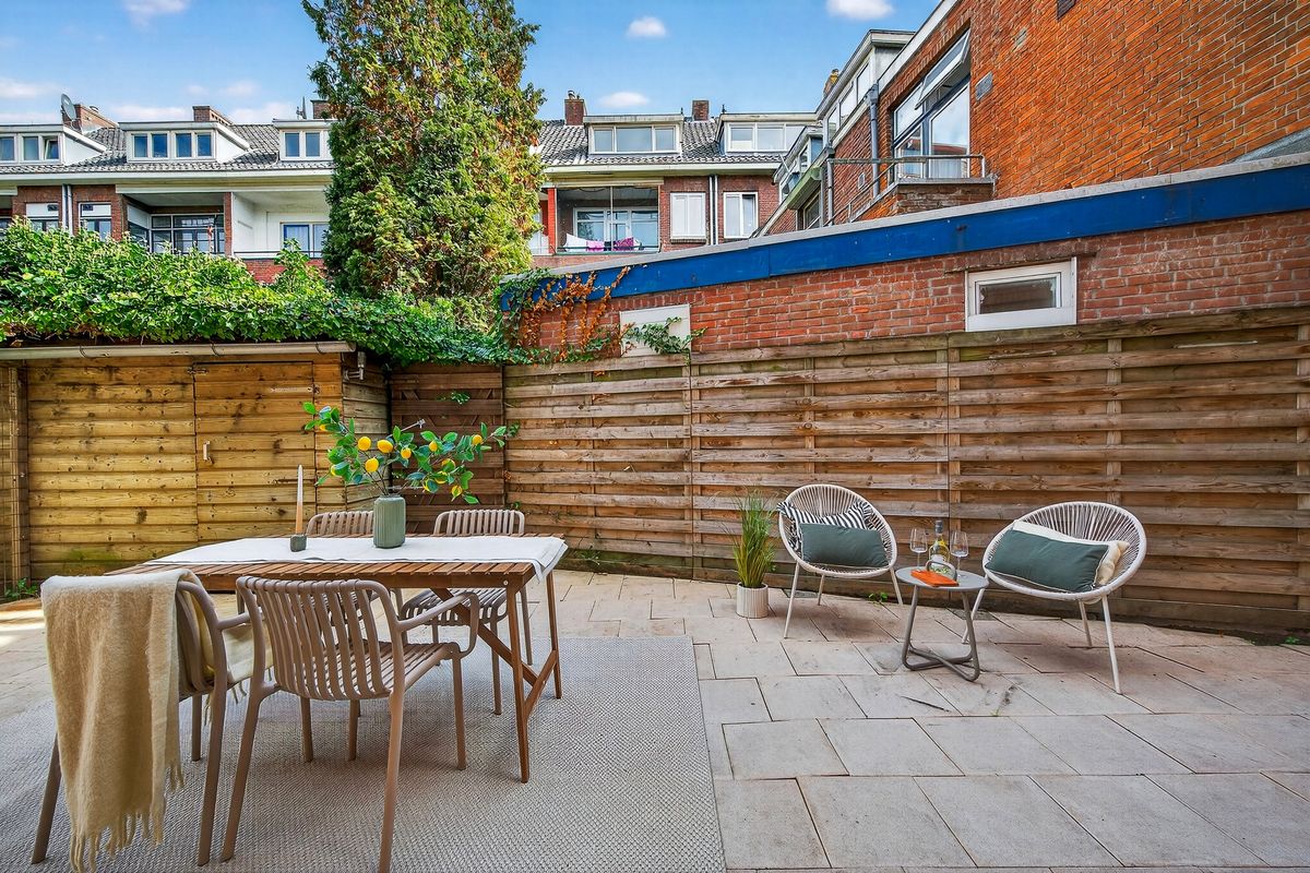 De achtertuin is een groot pluspunt van deze woning. Hier is volop ruimte voor een loungehoek en een buitentafel. Achter in de tuin staat een vrijstaande berging, ideaal voor fietsen en extra opslag.