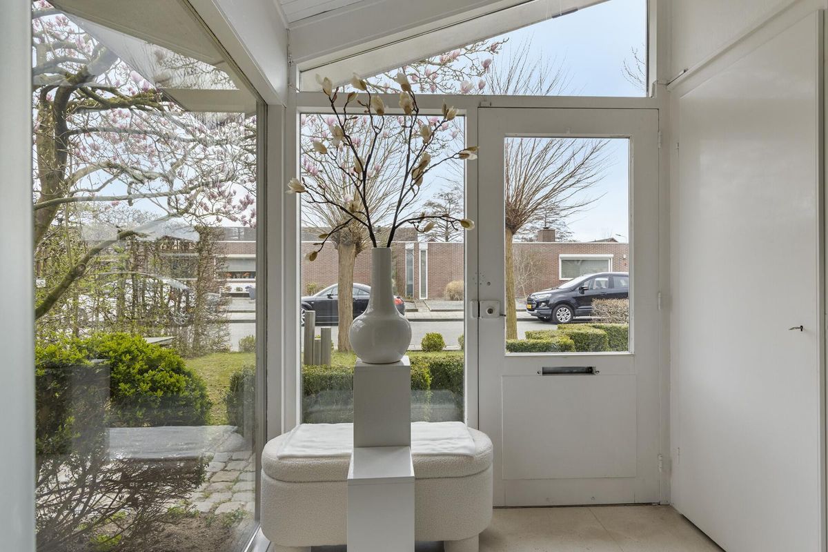 Bij binnenkomst via de voortuin kom je in een ruime hal met meterkast en doorgang naar de lichte en royale woonkamer, voorzien van een stijlvolle glazen deur. De woonkamer straalt licht en ruimte uit, mede dankzij de marmeren tegelvloer en grote raampartijen. In de winter zorgt de goed onderhouden houtkachel voor extra sfeer en warmte. Via de schuifdeur aan de zitzijde heb je direct toegang tot de prachtig aangelegde achtertuin.