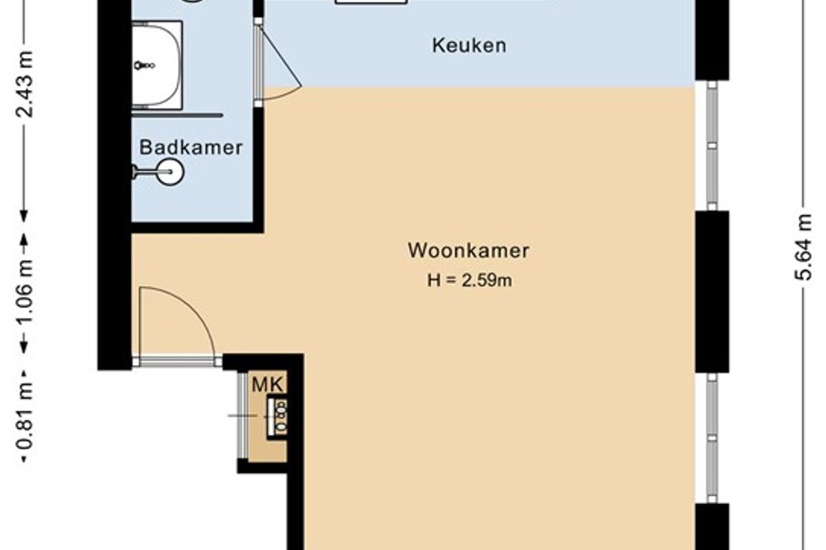 • Woonoppervlakte circa 25 m²