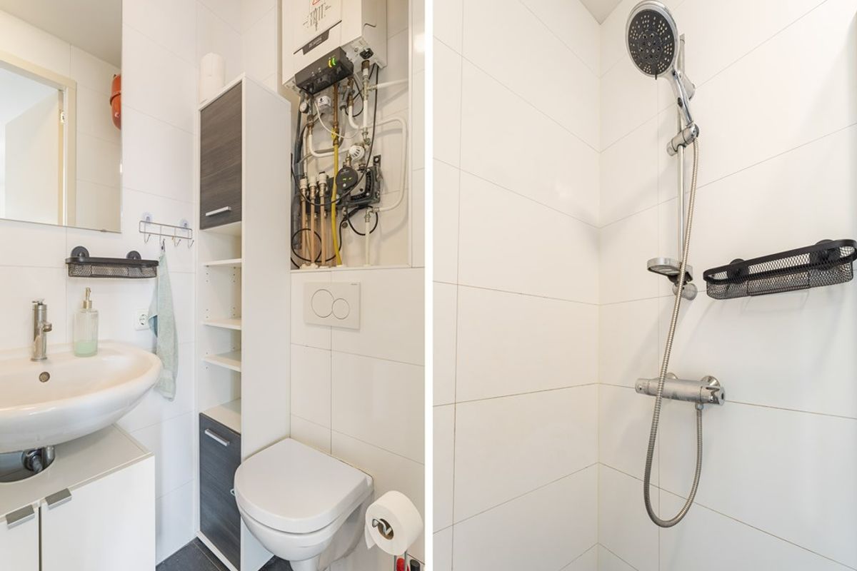 The kitchen is modern and functional, equipped with an induction cooktop, extractor hood and ample cabinet space. The bathroom is neatly finished and includes a walk-in shower, toilet and washbasin. With energy label A and good insulation, this home is both sustainable and comfortable year-round.