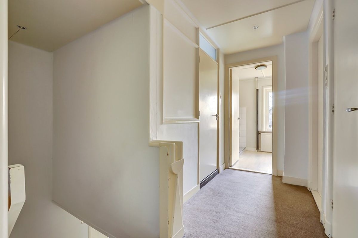 Vanaf de bordestrap bereikt u de overloop en drie slaapkamers, allemaal met vaste kasten en gelegen in het voorste deel van de woning. Verder vindt u op deze verdieping een badkamer, wasruimte, een vaste trap naar zolder en doorgang naar de studio (met eigen voorzieningen) aan de achterzijde van de woning.