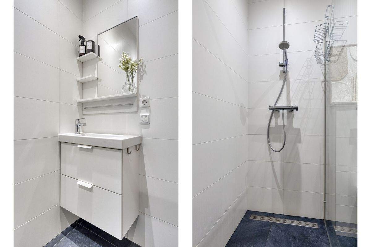 De keuken is compact en functioneel, voorzien van basisapparatuur. De badkamer is netjes uitgevoerd met douche, wastafel en toilet. Op de eerste verdieping bevindt zich bovendien een gezamenlijke wasruimte met wasmachine, exclusief voor de bewoners van deze etage. De woning beschikt verder over mechanische ventilatie, wat bijdraagt aan een comfortabel en gezond binnenklimaat.