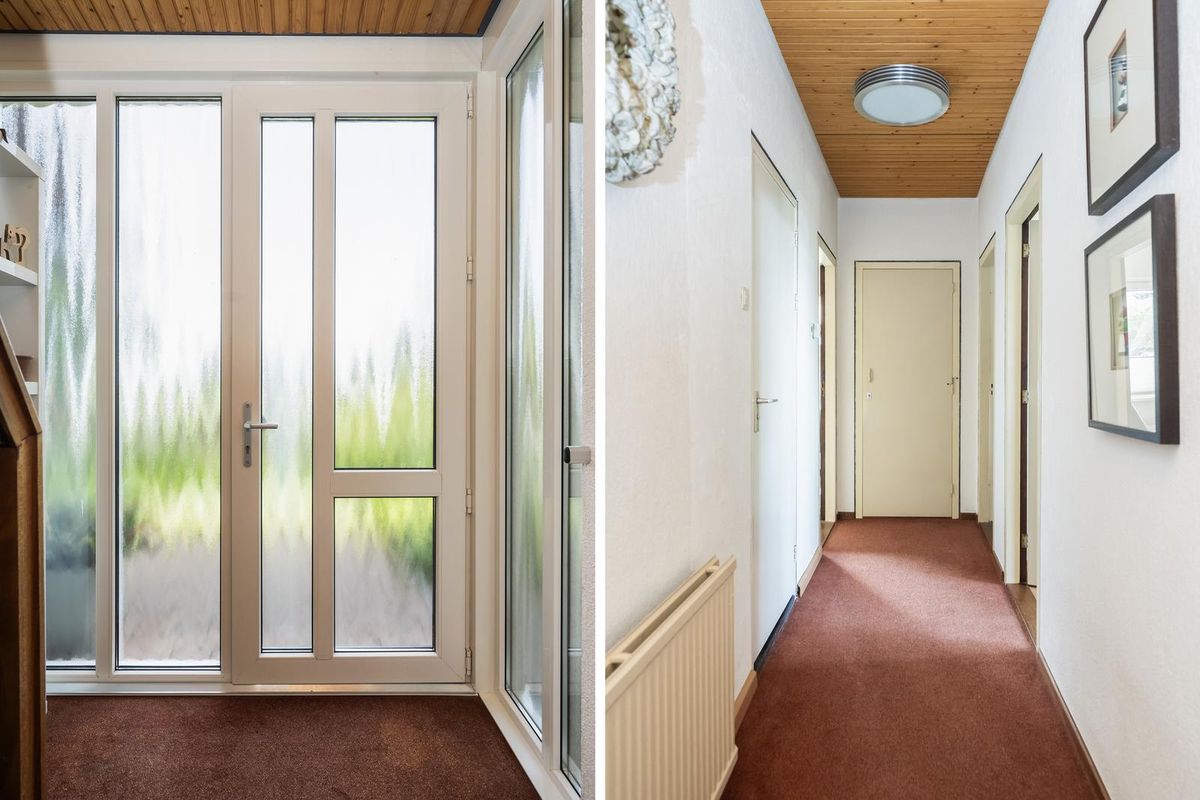 Entree, hal, dichte keuken, centraal in het huis gelegen.