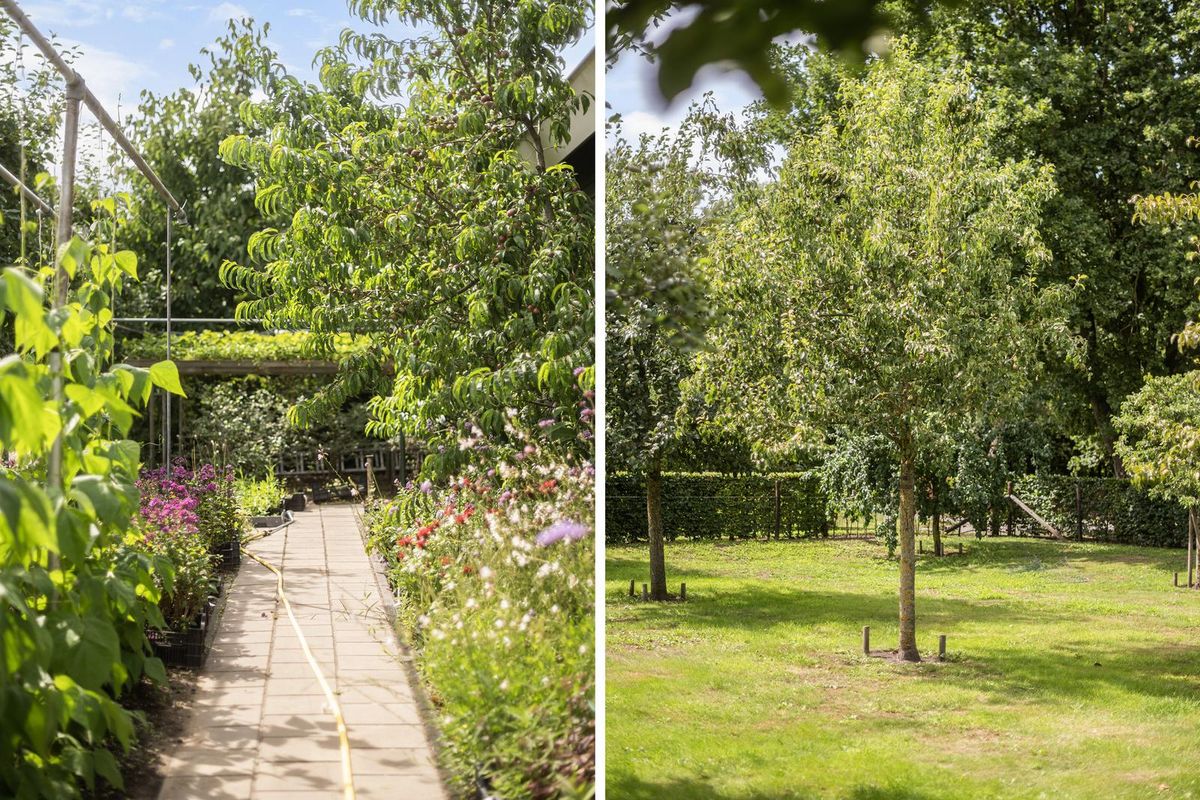 Het erf rondom de woning is fraai aangelegd en volledig in balans met de landelijke sfeer. De boomgaard met 31 soorten fruitbomen, de kas en de kippenren maken dit een paradijs voor liefhebbers van tuinieren en het zelf verbouwen van groenten en fruit. De aanwezigheid van een bijenstal benadrukt nog eens het natuurlijke karakter van deze plek. Dankzij de ruime opzet is er volop parkeergelegenheid op eigen terrein, zowel aan de voor- als achterzijde van de woning.