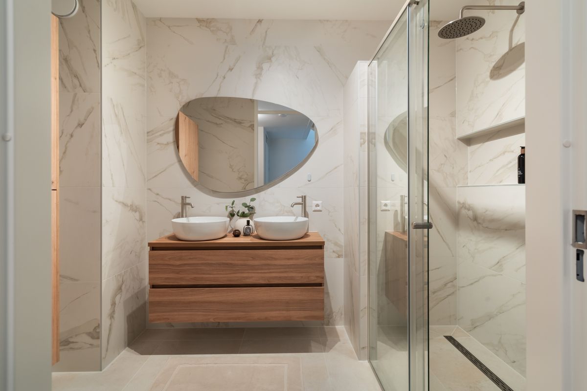 Ook op de bovenverdieping ervaar je licht en ruimte. De royale overloop leidt naar drie ruime slaapkamers en een luxe badkamer. De hoofdslaapkamer biedt de mogelijkheid voor een inloopkast, zodat je ochtenden georganiseerd en ontspannen beginnen. Aan de voorzijde bevinden zich de tweede en derde slaapkamer, beide ruim en veelzijdig in te richten. De splinternieuwe badkamer is voorzien van een dubbele wastafel en een royale inloopdouche, terwijl het toilet apart is geplaatst voor extra comfort en privacy.