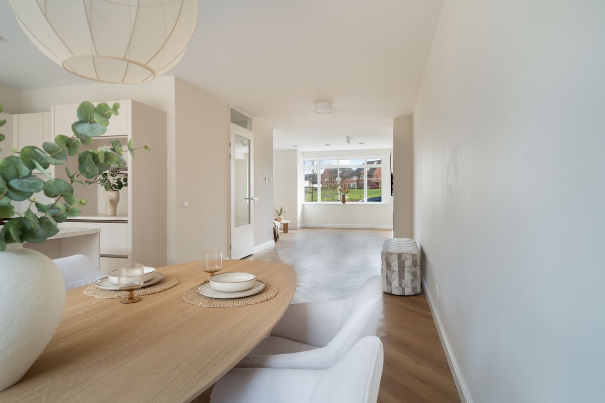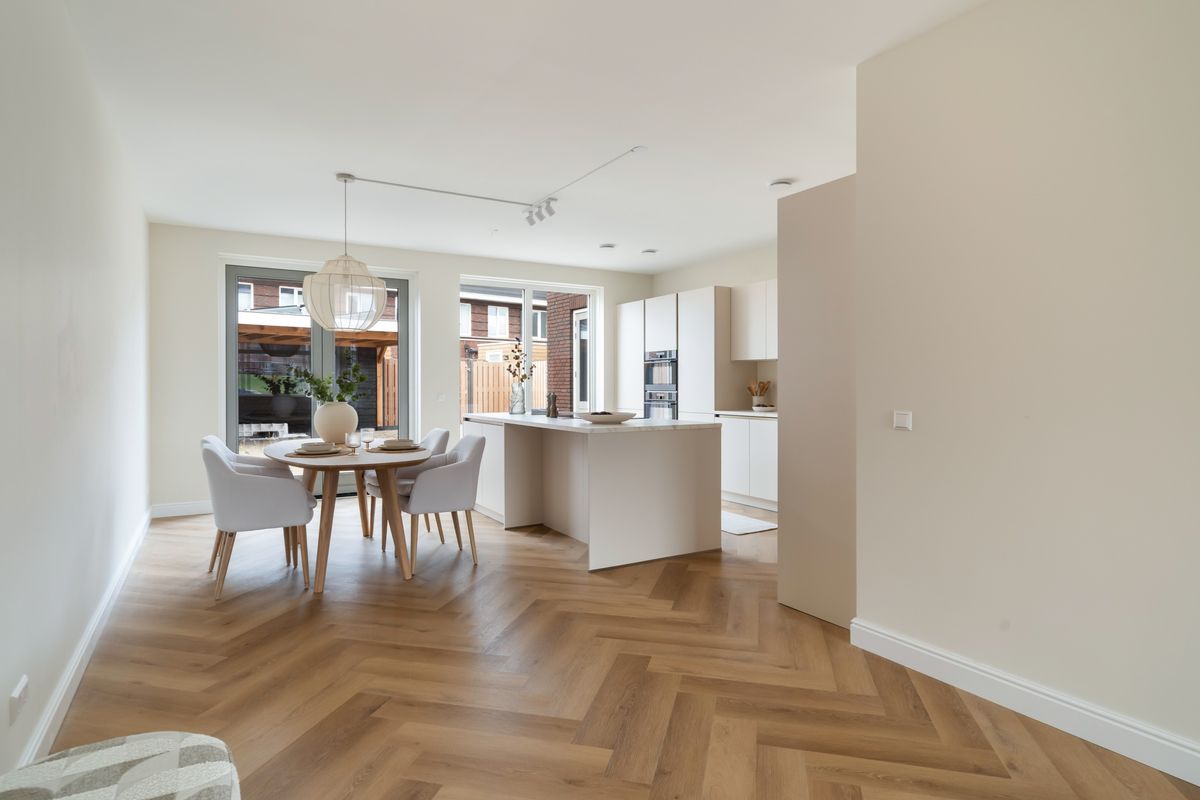 Zodra je de woning binnenstapt, valt meteen de lichte, open sfeer op. De hal biedt toegang tot het toilet, de trap naar boven en brengt je naar de verschillende vertrekken van de woning. Dankzij de vloerverwarming voelt het direct comfortabel en uitnodigend.
