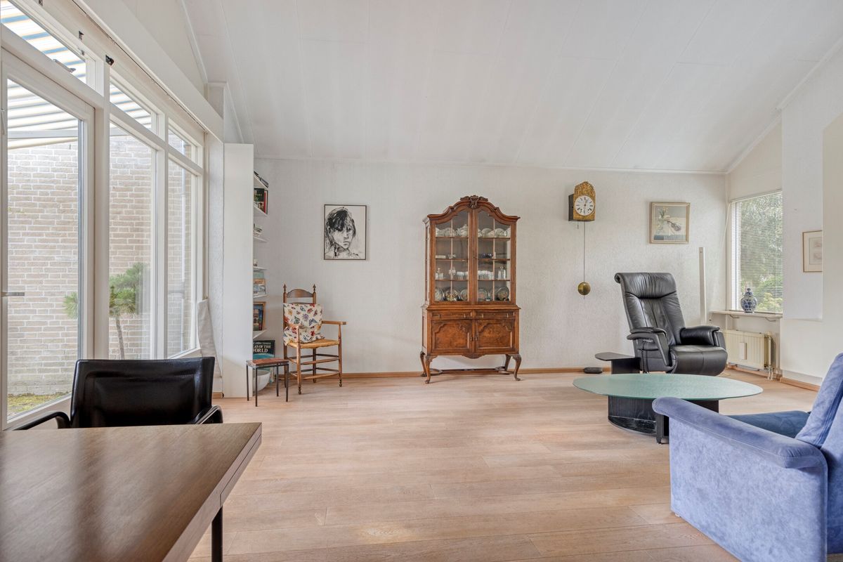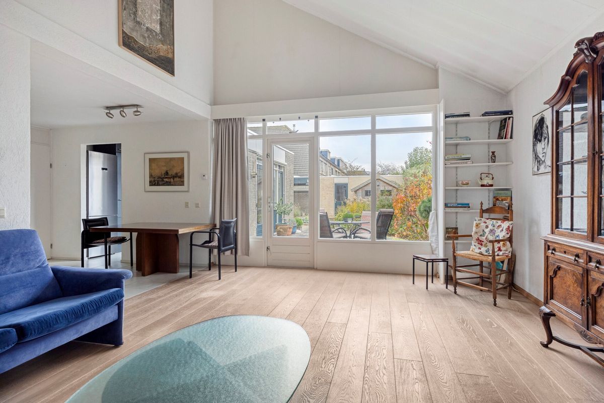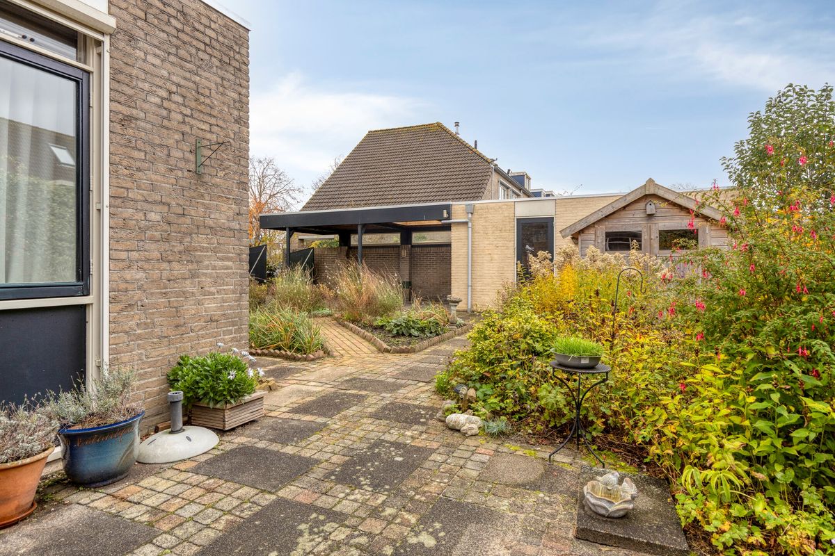 Wonderfully situated, semi-detached bungalow (built in 1991) on a generous 335 m² plot with three bedrooms; a bright, high-ceilinged, garden-facing L-shaped living/dining room; modern kitchen; spacious bathroom with a walk-in shower and double vanity with mirror lighting; separate wall-hung toilet with hand basin; separate laundry room; (master) bedroom with walk-in closet on the ground floor; carport behind the electrically operated gates; detached brick garage (16 m²); parking on the property; wooden shed; and 12 solar panels (energy label B). A very attractive layout, suitable for lifelong living, with living and sleeping on the ground floor! This terraced house is quietly situated on a cycle path and water featurel. The spacious plot offers many possibilities for further expansion of the ground floor or first floor. And how about the sheltered, sunny, and beautifully landscaped garden on three sides with plenty of privacy and remote-controlled sun blinds!