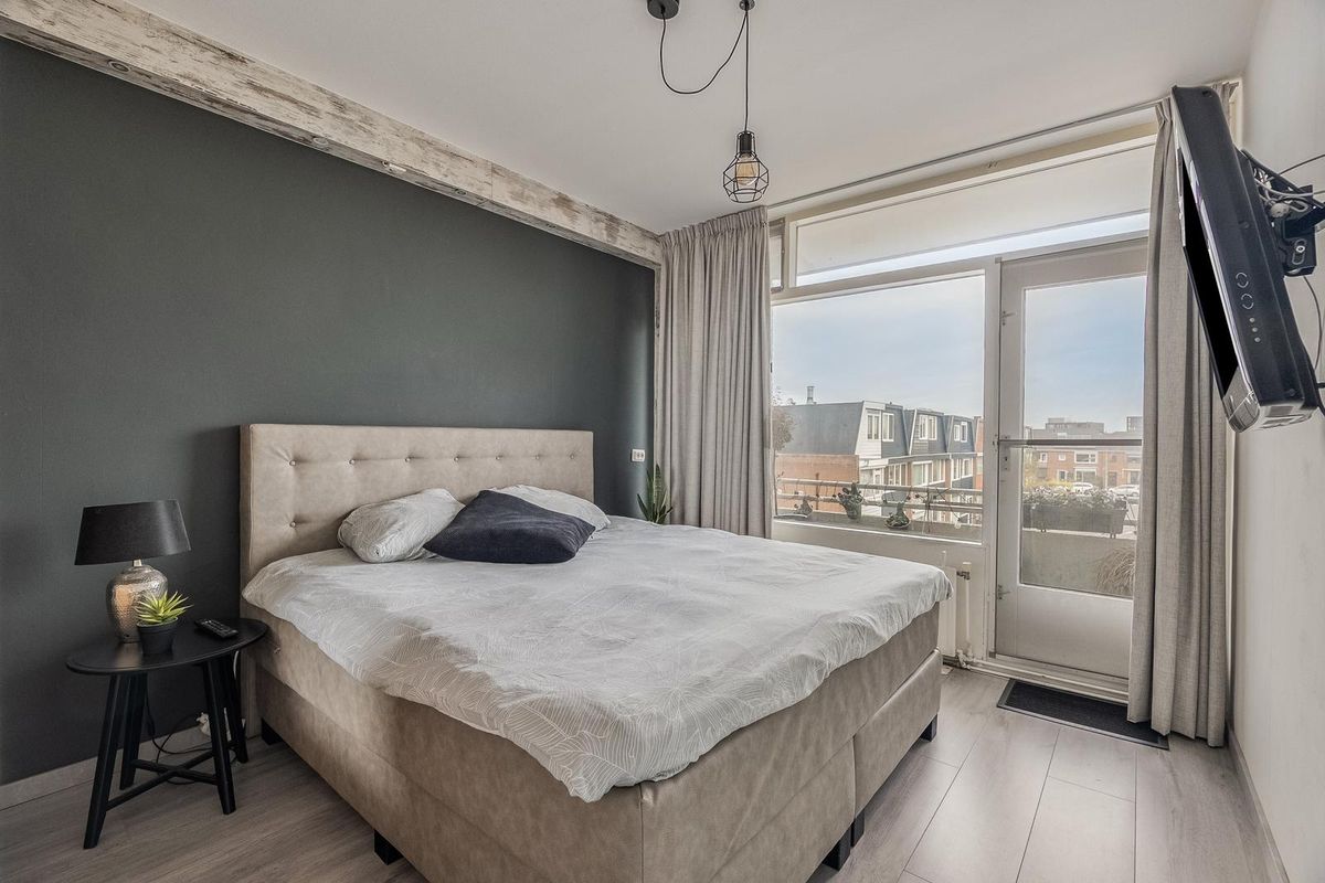 Slaapkamer 1 (ca. 11 m2) is gelegen aan de voorzijde en voorzien van een brede laminaatvloer. Door middel van een balkondeur met schuifhor heeft u toegang tot het balkon.