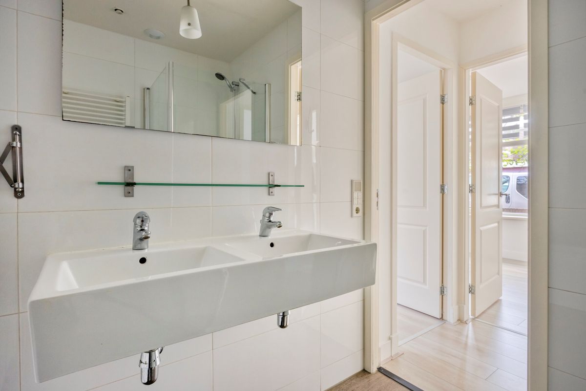 Entree woning op de begane grond; voordeur met gang en vaste kast (meterkast en wasmachine aansluiting); separaat toilet met fontein; woon/eetkamer (5.00 x 4.15) met een luxe open keuken, welke voorzien is van een vaatwasser, een 4-pits inductie kookplaat, een afzuiger, een combi oven, een inbouw koel-/vries combinatie; tussengelegen moderne badkamer (2.60 x 1.96), welke voorzien is van een inloop douche, een ligbad en badkamermeubel; slaapkamer I (3.22 x 2.87) aan de achterzijde met openslaande deuren naar de tuin; slaapkamer II (2.78 x 2.19) aan de achterzijde met openslaande deuren naar de tuin; tuin (6.74 x 3.12) met vaste kast (opstelplaats CV-ketel), gelegen op het noord westen met toegang naar de straat en de gemeenschappelijke voortuin (12.06 x 3.23);