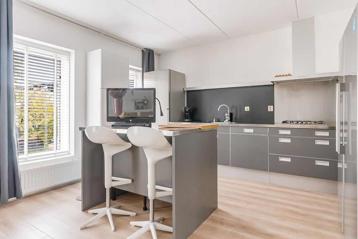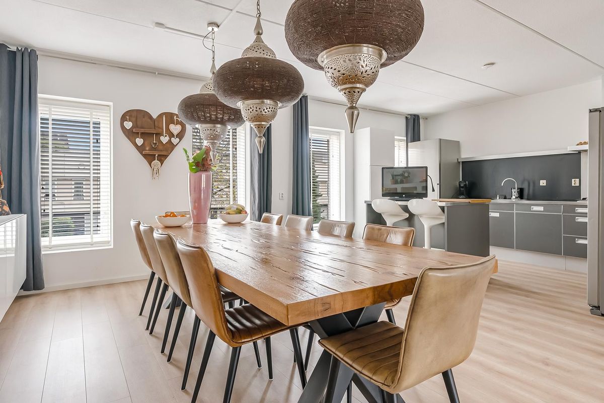 Grote open leefruimte met veel licht en meerdere indelingsmogelijkheden. De keuken (2015) is uitgerust met een combi-oven, koelkast en vaatwasser.