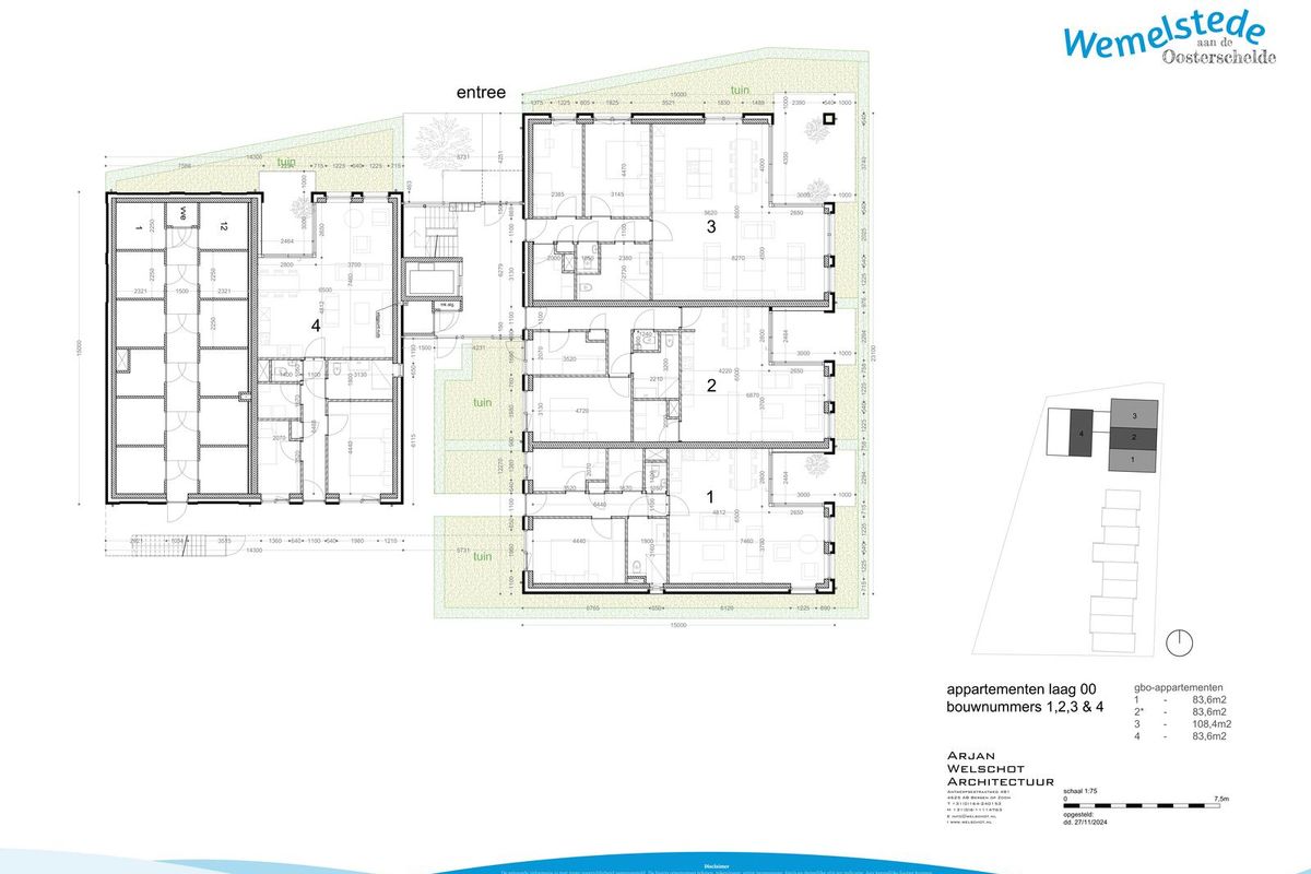 Op de locatie van autogarage De Witte te Wemeldinge wordt een herontwikkeling voorgesteld, “Wemelstede aan de Oosterschelde” is de passende naam voor dit nieuwe stukje Wemeldinge. Een nieuw stukje dorp is hier ontworpen door architect Arjan Welschot, wat de bestaande karakteristieken qua maat, schaal en korrel respecteert en aansluit op toekomstige ontwikkelingen. De nieuwe voet-fietspad verbinding van de achterliggende straten met de Boulevard creëert ruimte voor het maken van een bescheiden accent met een appartementengebouw in 3 lagen. Hiernaast komen, met een spatie gevormd door de inrit van het parkeren, 9 fijne rijwoningen.