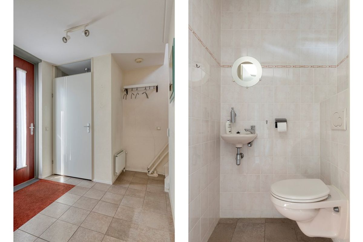 Met toiletruimte, meterkast (8 groepen 2 al) trap naar de verdieping en toegang tot de woonkamer.