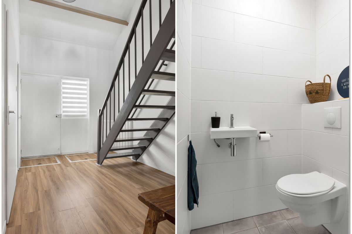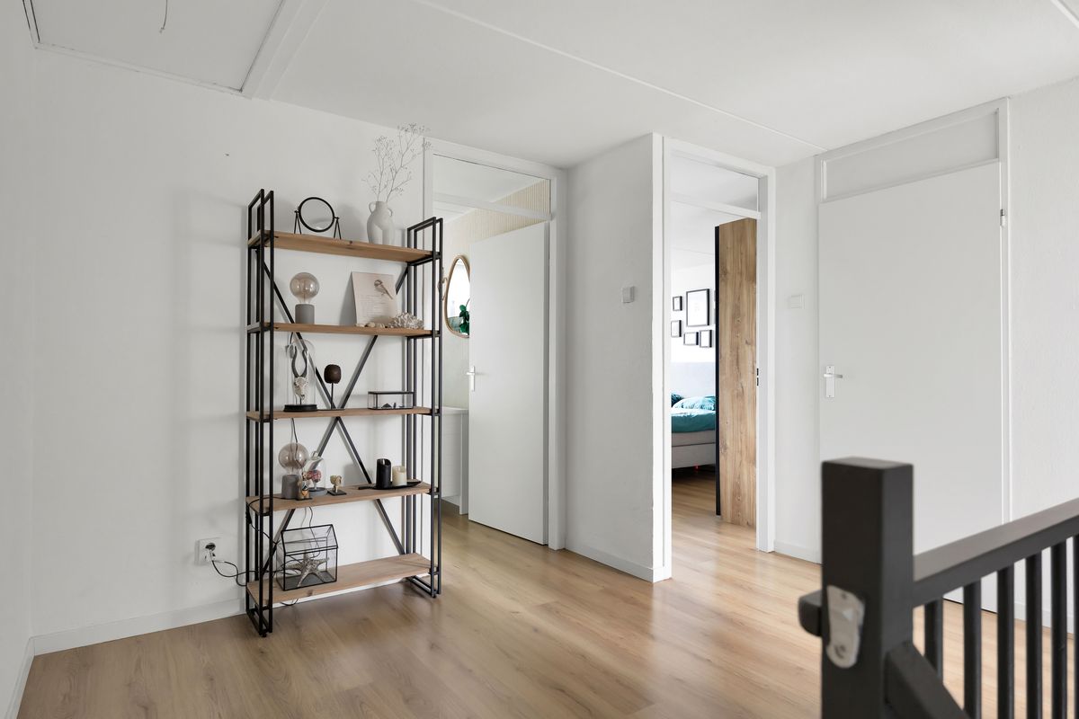 De ruime overloop geeft toegang tot de 3 slaapkamers en de moderne badkamer met douche, wastafelmeubel en 2e toilet.