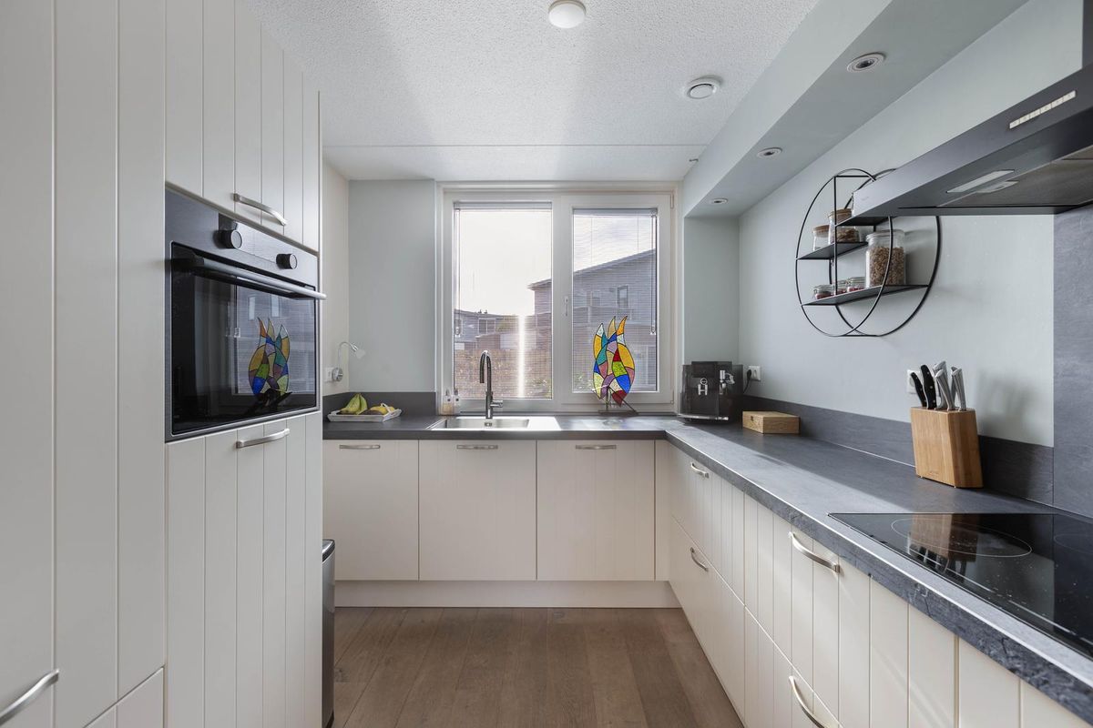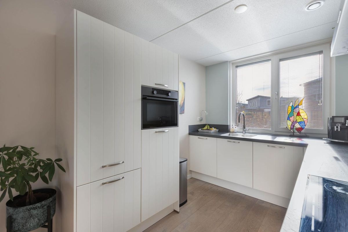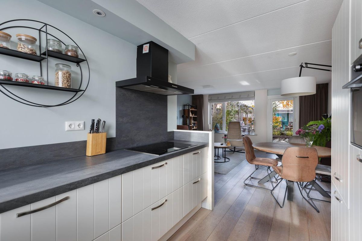 Via de entree/hal met een moderne meterkast en toilet bereikt u de tuingerichte woonkamer met een deur naar de tuin en aansluitend aan de voorzijde van de woning de open keuken in hoekopstelling. Deze is voorzien van een inductieplaat, koelkast, combi oven, 7l quooker en vaatwasser. De begane grond is voorzien van een massief eiken vloer met vloerverwarming.