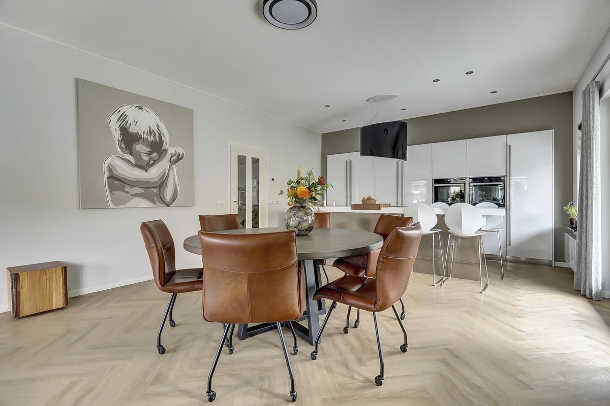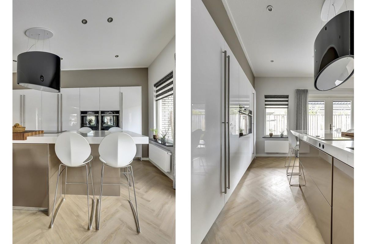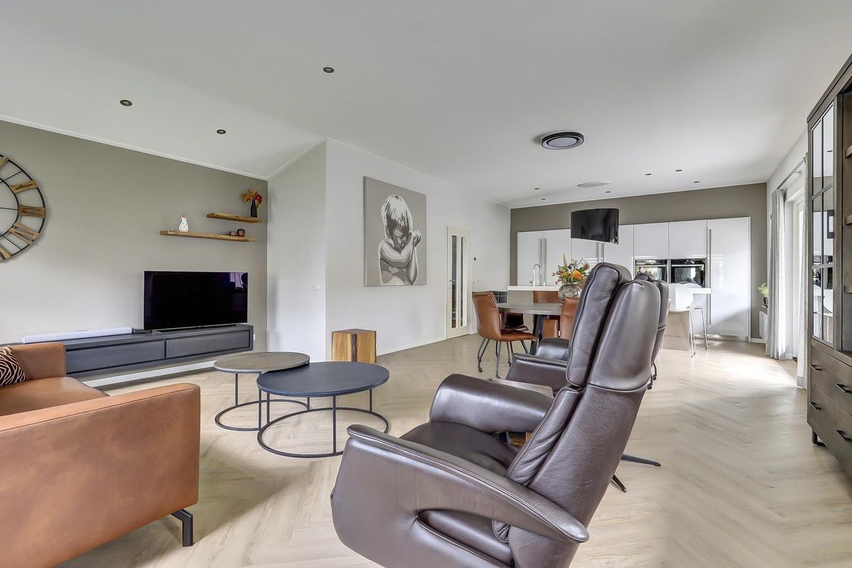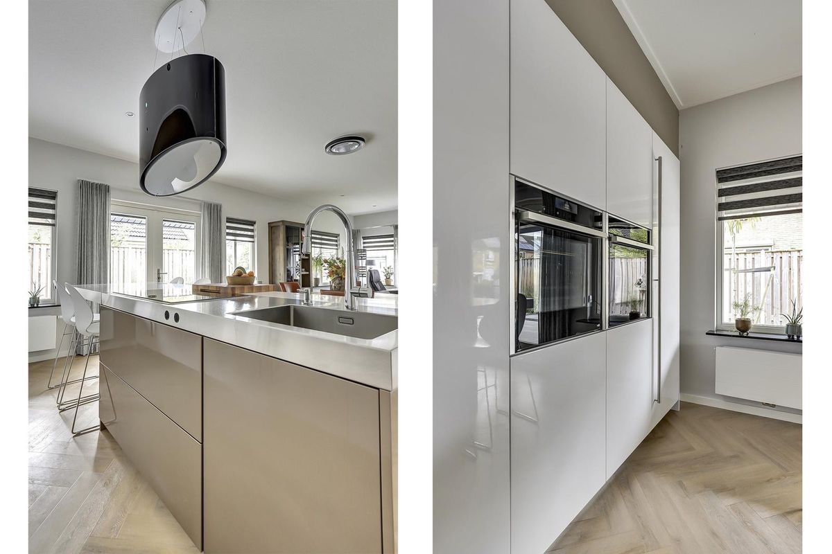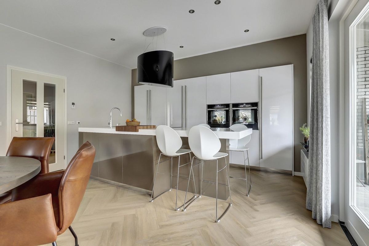 De open keuken is een droom voor kookliefhebbers. Het grote kookeiland met bar is niet alleen praktisch, maar ook een echte blikvanger. De keuken is voorzien van moderne inbouwapparatuur, waaronder een inductiekookplaat, stoomoven, gewone oven, vaatwasser en een royale koelkast. Vanuit de keuken loopt u via de openslaande deuren zo de overkapping en tuin in.