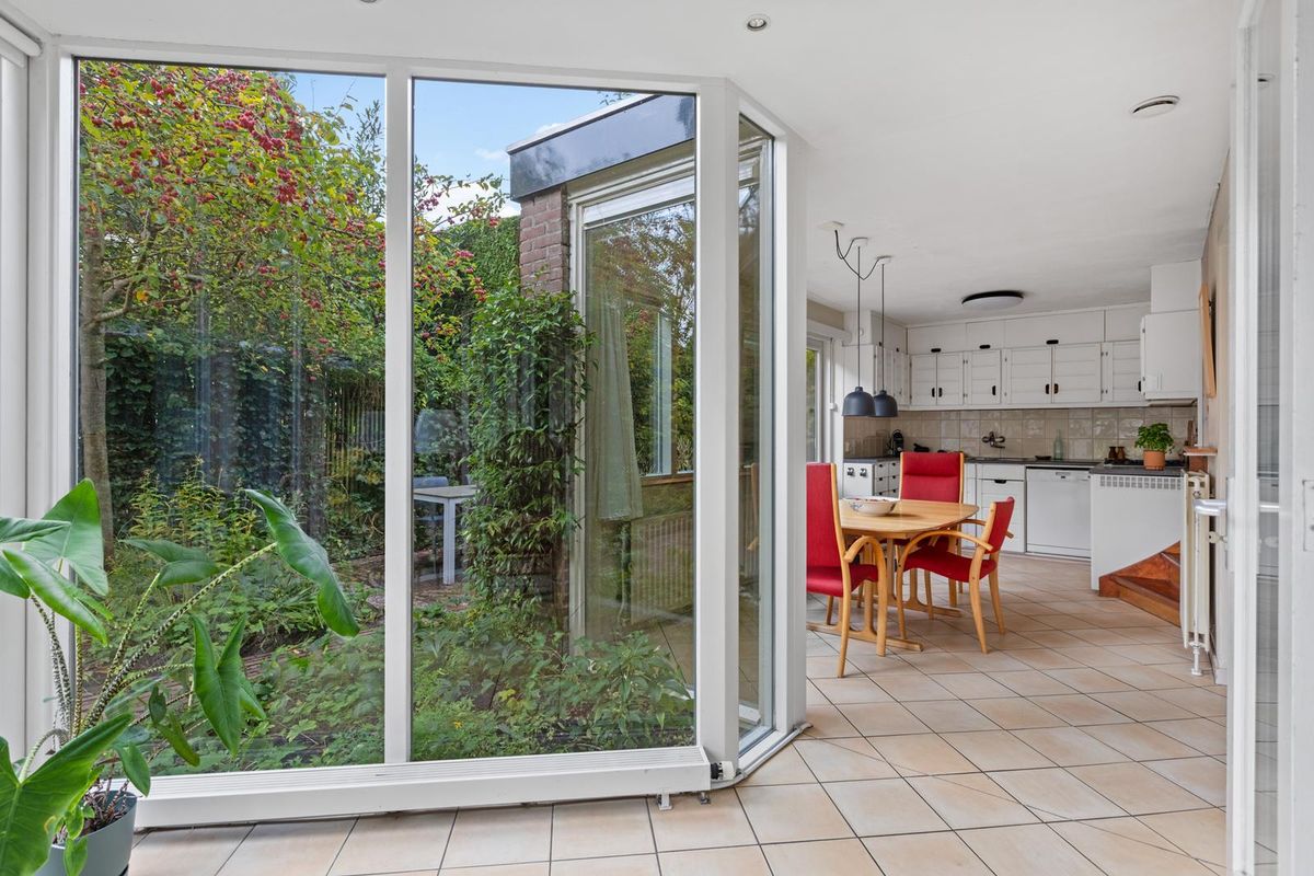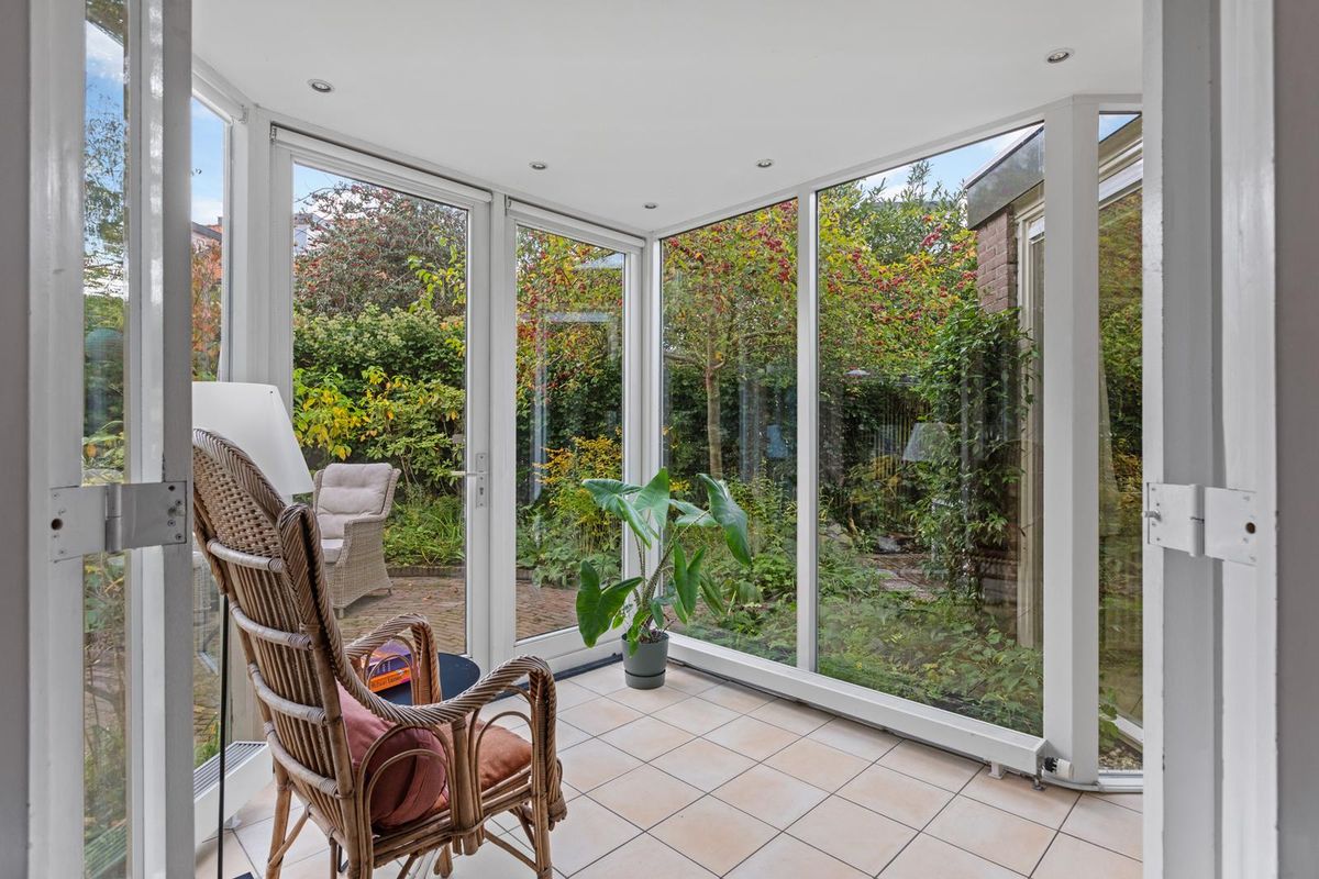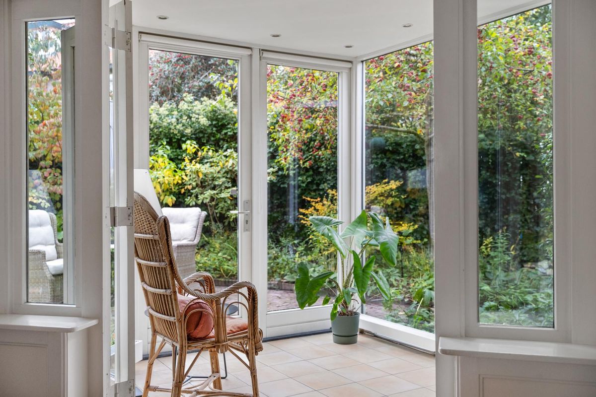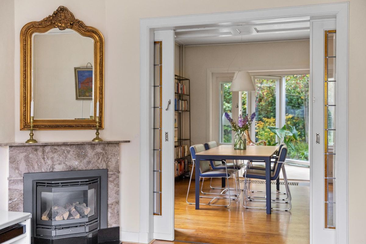 Zowel vanuit de hal, als via de keuken heb je toegang tot de woonkamer. Hier is de kamer-en-suite met haar glas-in-lood ramen bewaard gebleven, wat direct zorgt voor een sfeervolle uitstraling. De kamer aan de voorzijde met de erker en gaskachel is de plek voor het creëren van een gezellige zithoek waar je samen een kopje koffie drinkt of met een goed boek tot rust komt op de bank. In de kamer aan de achterzijde is ruimte voor een eethoek om met het hele gezin uitgebreid te tafelen. De serre, grenzend aan de woonkamer, is pas later bijgebouwd. Zie jij jezelf hier al zitten ’s ochtends, terwijl je in jouw favoriete fauteuil geniet van een eerste kopje koffie?