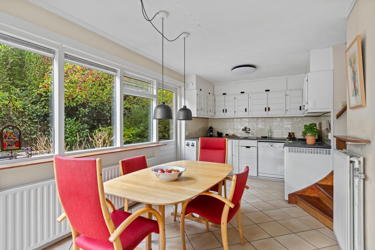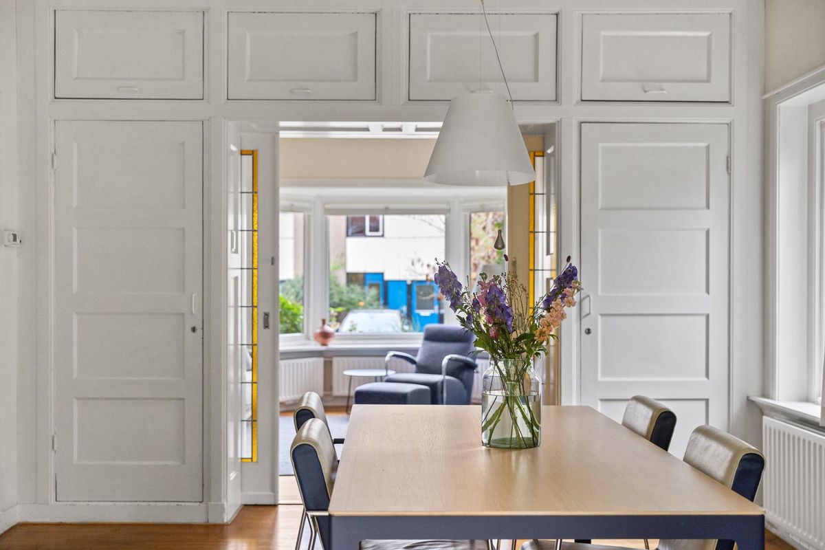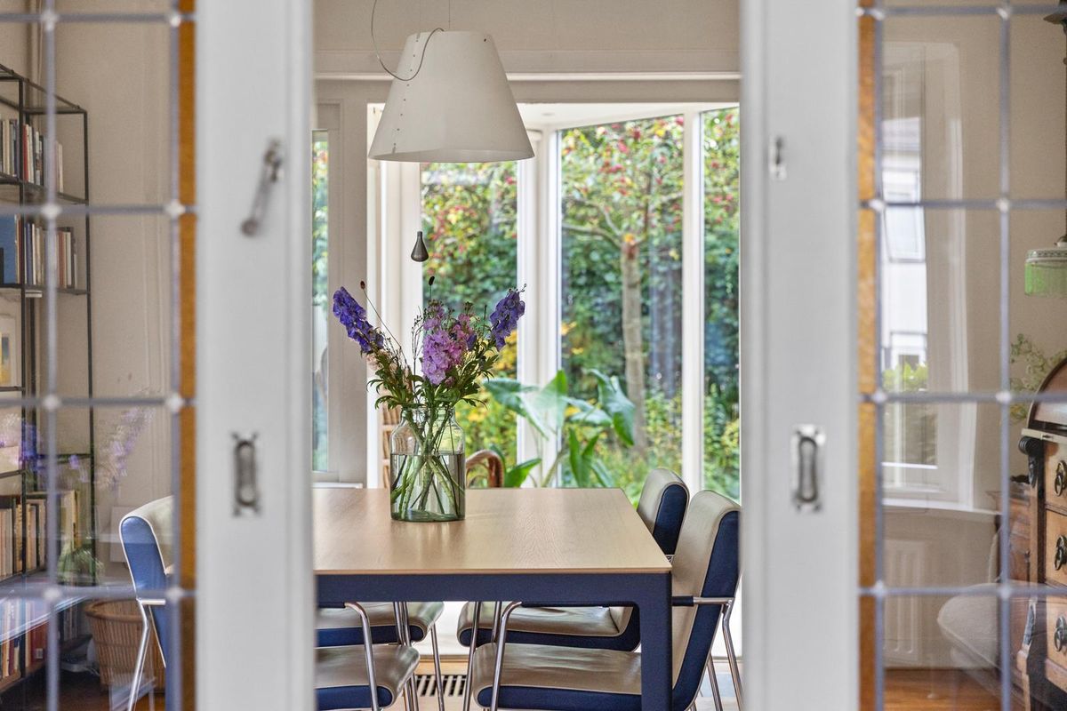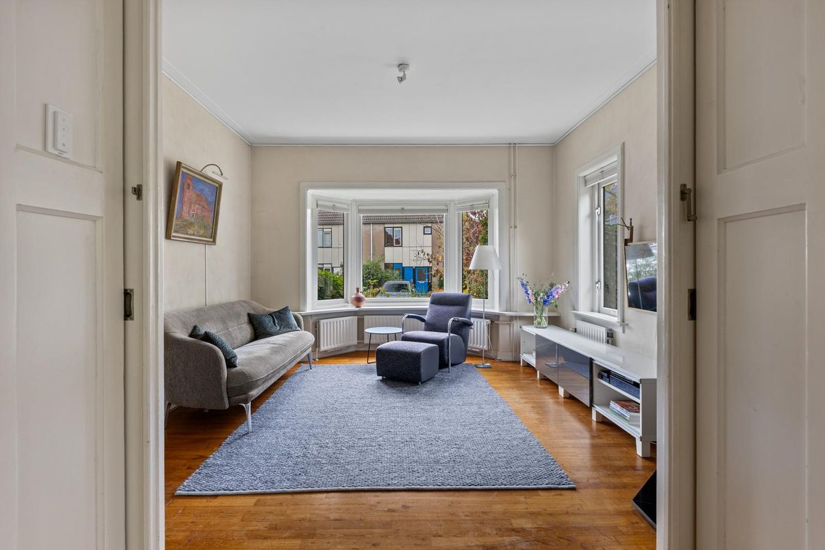 Zowel vanuit de hal, als via de keuken heb je toegang tot de woonkamer. Hier is de kamer-en-suite met haar glas-in-lood ramen bewaard gebleven, wat direct zorgt voor een sfeervolle uitstraling. De kamer aan de voorzijde met de erker en gaskachel is de plek voor het creëren van een gezellige zithoek waar je samen een kopje koffie drinkt of met een goed boek tot rust komt op de bank. In de kamer aan de achterzijde is ruimte voor een eethoek om met het hele gezin uitgebreid te tafelen. De serre, grenzend aan de woonkamer, is pas later bijgebouwd. Zie jij jezelf hier al zitten ’s ochtends, terwijl je in jouw favoriete fauteuil geniet van een eerste kopje koffie?