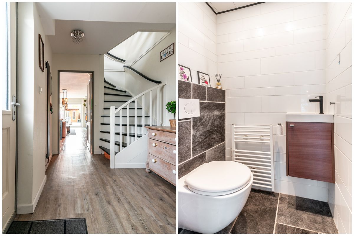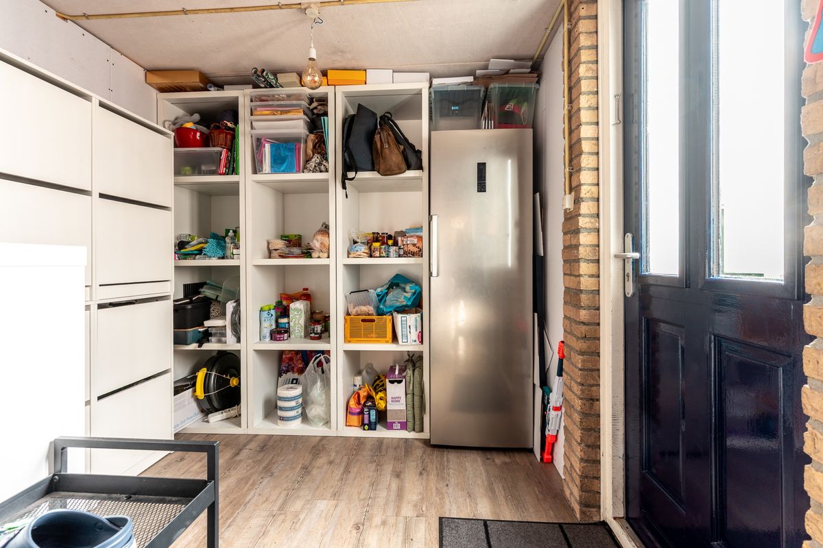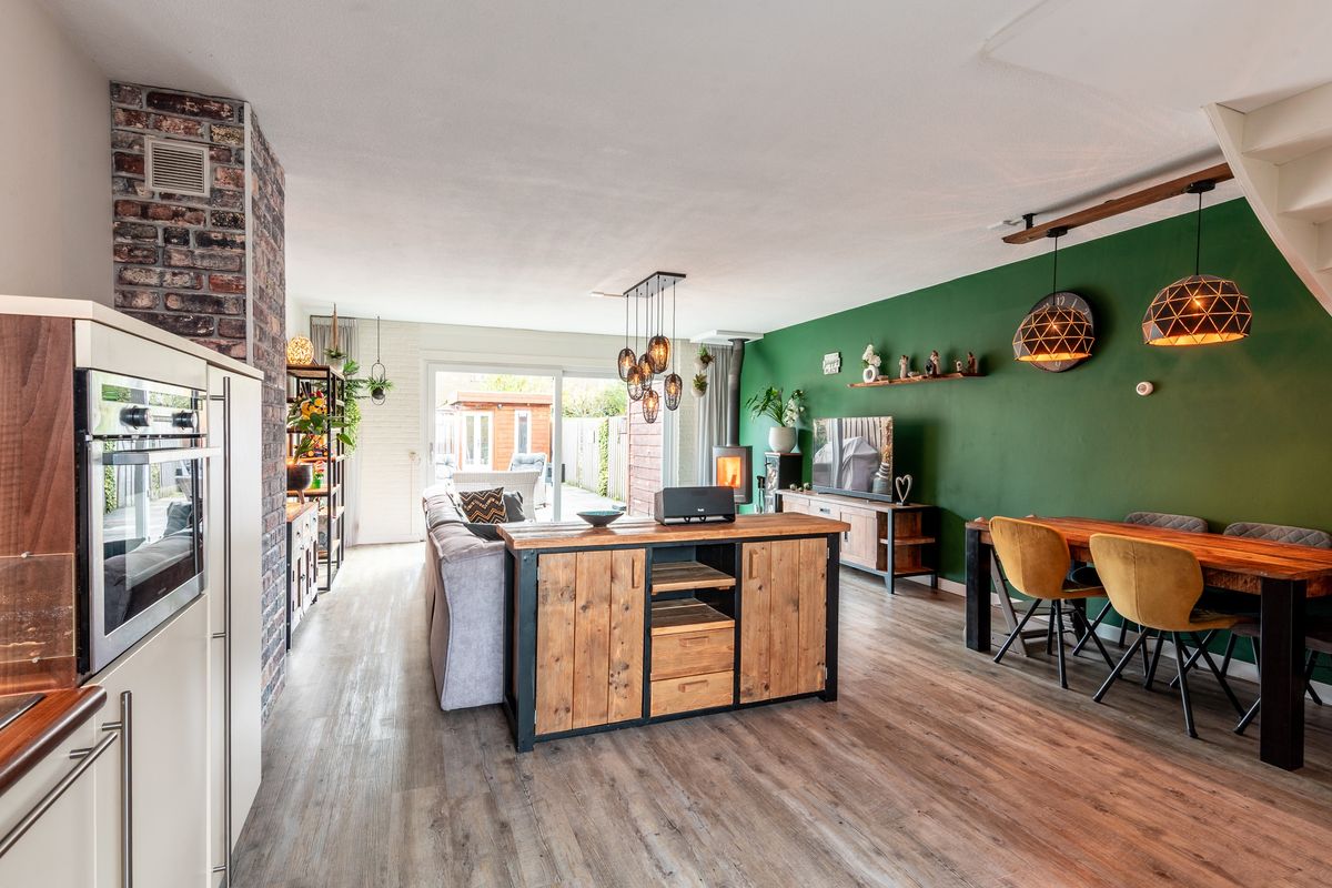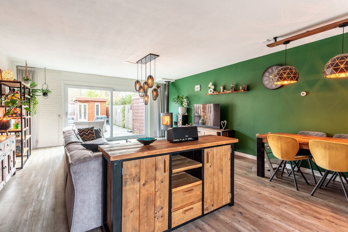 Via de strak bestrate voorplaats kom je binnen in een lichte hal met modern toilet, meterkast en trapopgang. Ook tref je hier een doorgang naar de aangebouwde stenen berging. De woonkamer is tuingericht, hier valt veel daglicht naar binnen door de schuifpui. De open keuken in hoekopstelling is voorzien van diverse inbouwapparatuur waaronder een gasfornuis, combi oven/ magnetron, vaatwasser en een koelkast. De woonkamer en keuken zijn voorzien van een nette pvc vloer en vloerverwarming. Op koude dagen zet je lekker de houtkachel aan voor een behaaglijke warmte, duurzaam en gezellig. Op warme dagen zorgt het elektrisch zonnescherm voor verkoeling én extra wooncomfort.