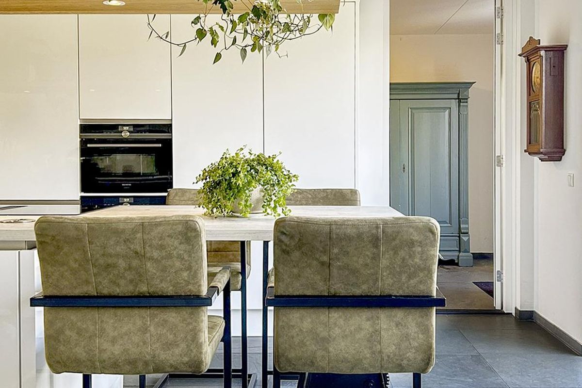 De open keuken vormt het kloppend hart van het huis. Met een groot kookeiland, hoogwaardige Siemens-apparatuur en een stijlvolle afwerking met vaste kastenwand is dit dé plek om samen te zijn. Via de openslaande deuren loop je direct de fraai aangelegde tuin in – binnen en buiten vloeien hier natuurlijk in elkaar over.
