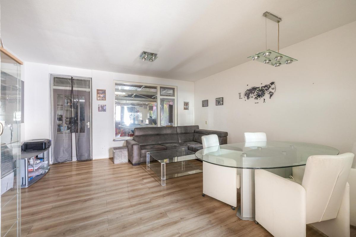 De woonkamer biedt voldoende ruimte voor een comfortabele zithoek én een eethoek. Daarnaast is er een praktische provisiekast aanwezig, ideaal voor extra opslag. Vanuit de woonkamer is er toegang tot een multifunctionele ruimte, die naar wens kan worden ingericht.