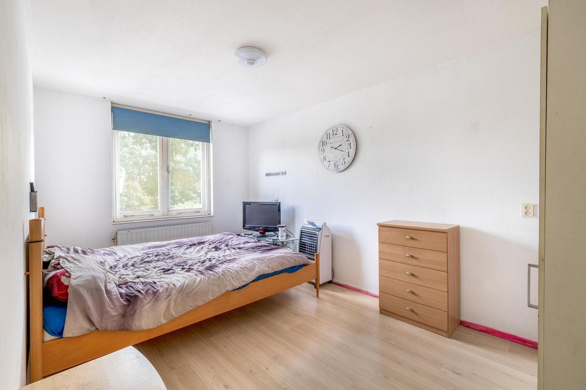 De woning beschikt over drie slaapkamers, die allemaal zijn afgewerkt met een nette laminaatvloer. De grootste slaapkamer, met een oppervlakte van circa 12,5m², is gelegen aan de achterzijde van de woning. Aan de voorzijde bevindt zich de tweede slaapkamer, die ongeveer 10,5m² meet. De derde slaapkamer ligt naast de grootste kamer aan de achterzijde en heeft een oppervlakte van circa 7m².