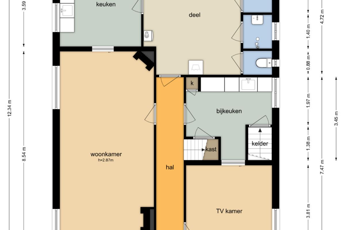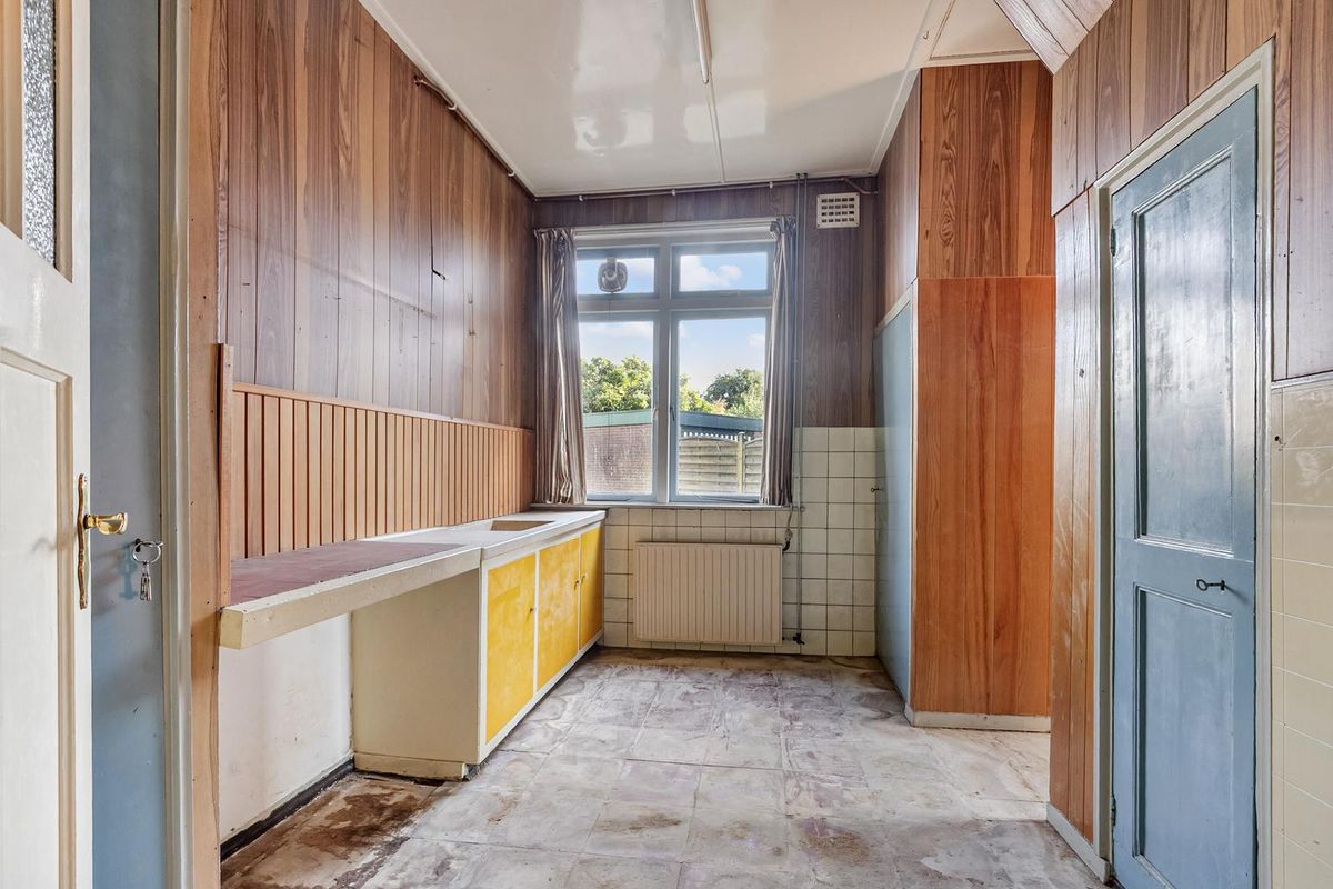 Achter de keuken vind je een deel met toegang tot het toilet en de doucheruimte. Ook is er een bijkeuken aanwezig, handig voor de was of opslag, met een vast kast. Vanuit hier kom je in de kelder. Daarnaast is er nog een extra kamer op de begane grond die je bijvoorbeeld kunt gebruiken als speelruimte, tv-kamer of werkplek.