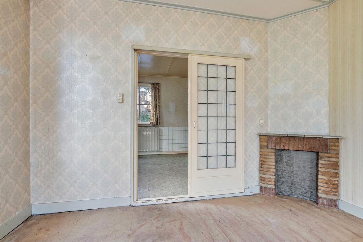 Entree met hal. De hal brengt je naar verschillende vertrekken. De woonkamer is licht en heeft een haard als sfeervol middelpunt. Vanuit hier loop je via schuifdeuren de keuken in, die door de ramen prettig en uitnodigend aanvoelt. Je kunt ervoor kiezen de keuken zo te gebruiken, of juist te combineren met de woonkamer en er een grote leefkeuken van te maken.