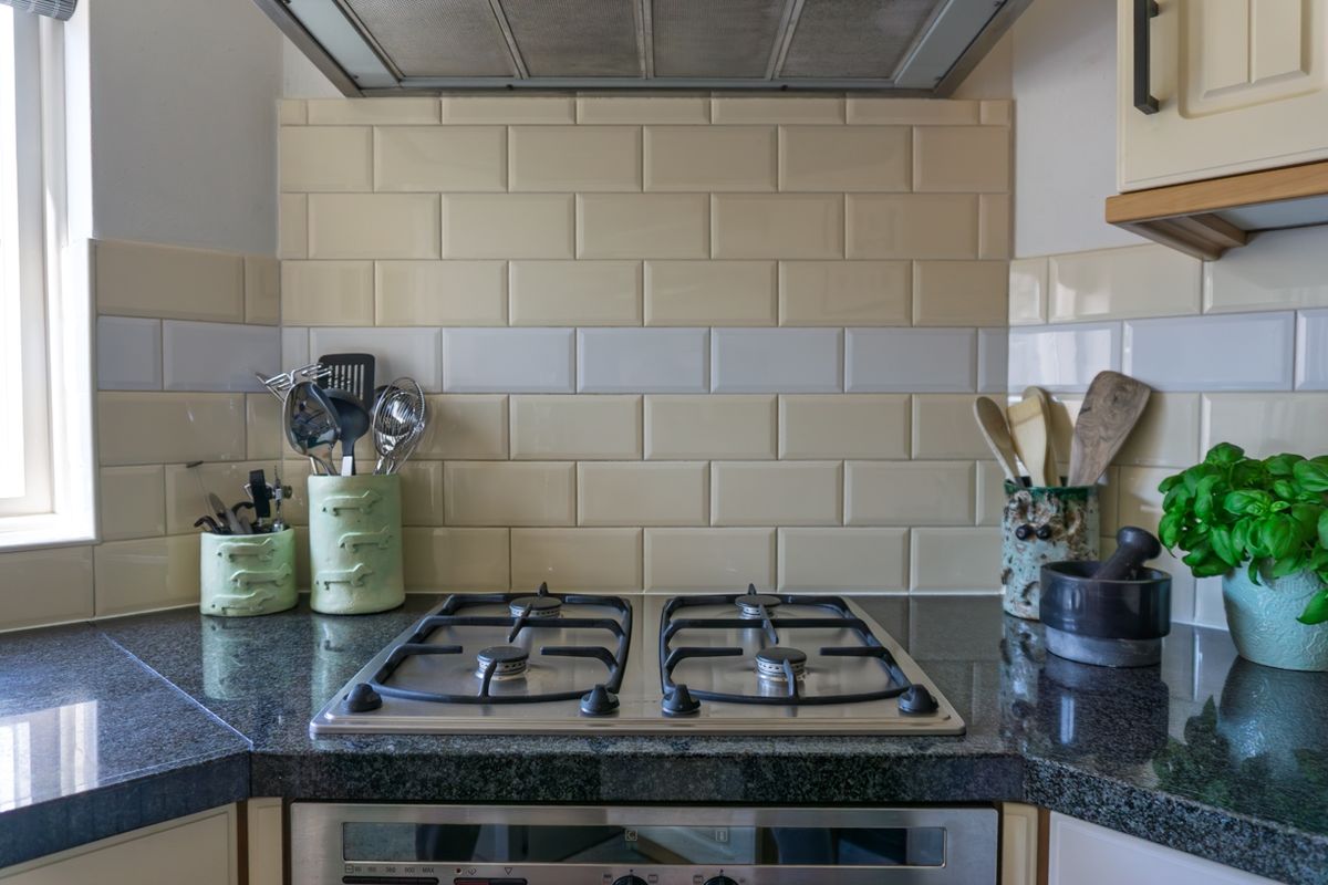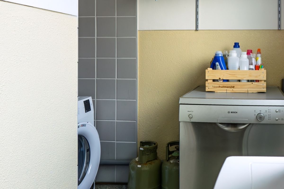 In de bijkeuken zijn de aansluitingen aanwezig voor de wasmachine en de wasdroger. Ook is hier plaats voor een vaatwasser.
