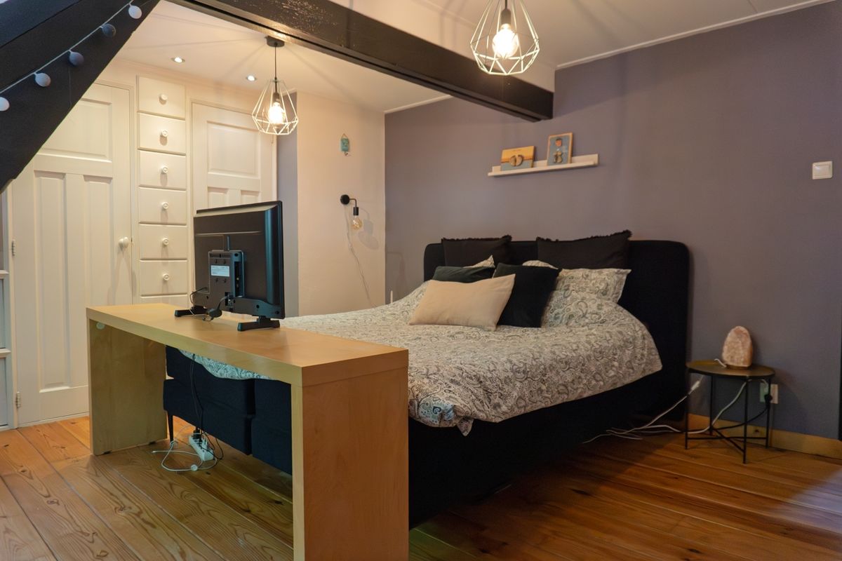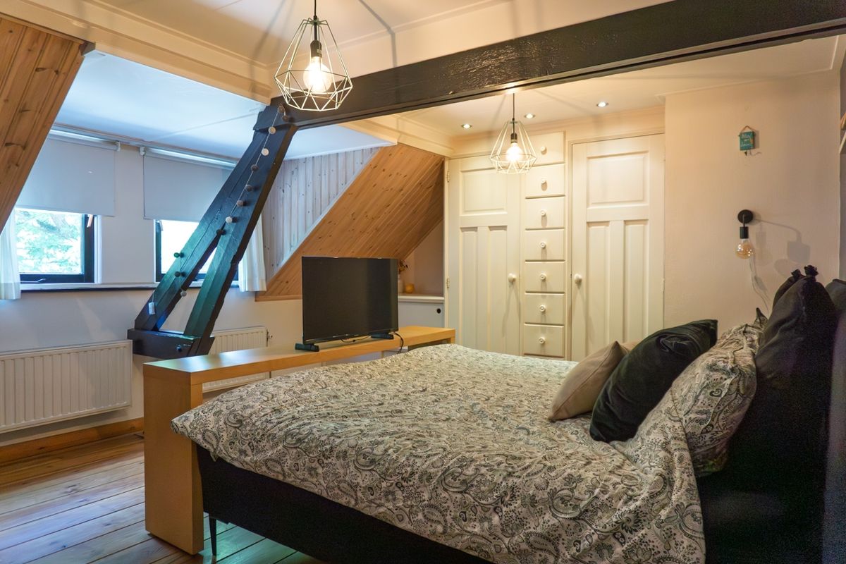 Deze slaapkamer is aan de voorzijde van de woning gelegen en beschikt over een dakkapel. Aan de zijkant van de slaapkamer is een vaste kast aanwezig. De afwerking van de slaapkamer bestaat uit gestucte wanden, een houten plankenvloer en gipskartonplaat aan het plafond.