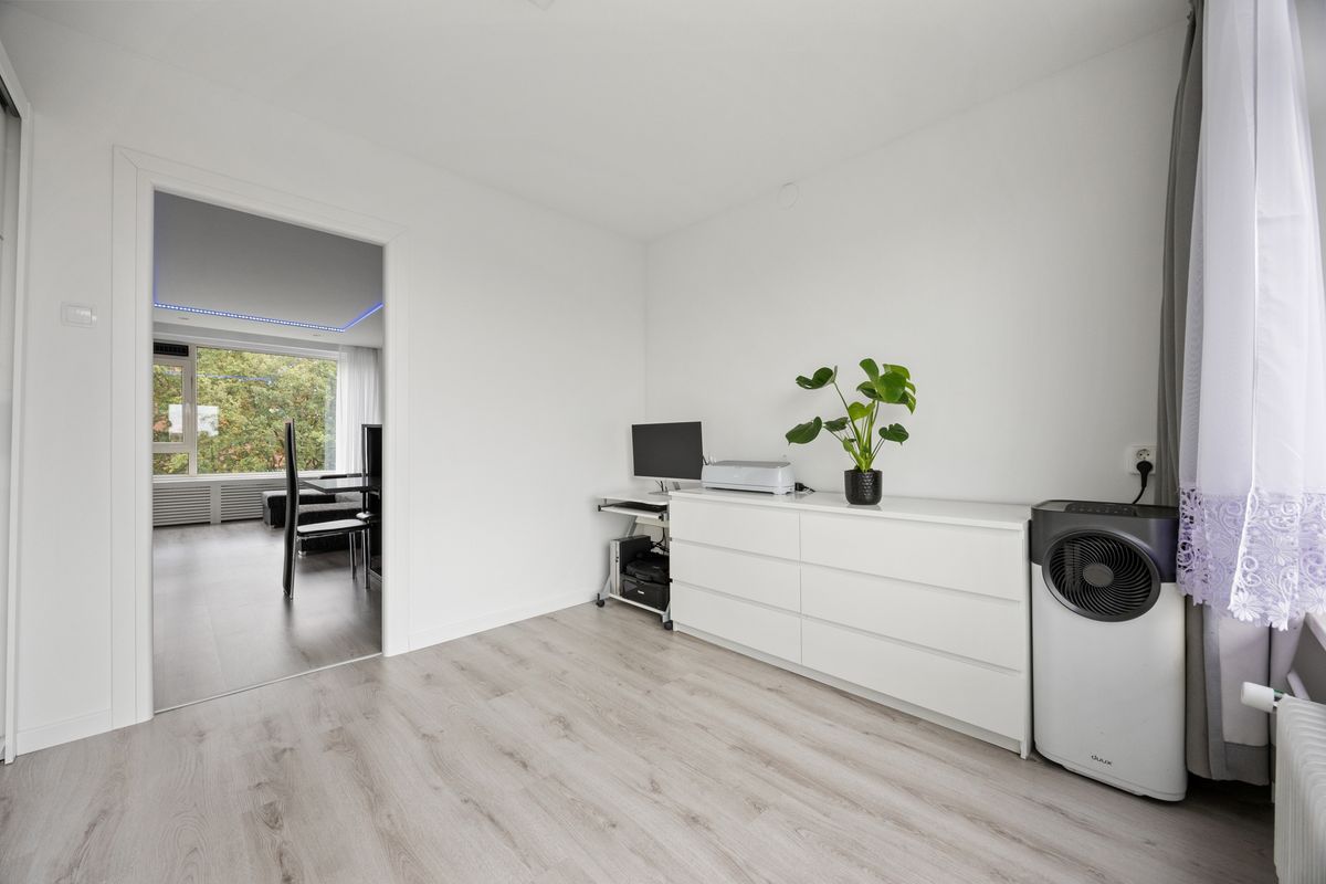 Vanuit de woonkamer heb je direct toegang tot de eerste en grootste slaapkamer. Deze slaapkamer biedt voldoende ruimte voor een tweepersoonsbed en een grote kledingkast maar kan ook ingericht worden als kinderkamer, werk- of kledingkamer. Dan vinden we de tweede slaapkamer aan de achterzijde van de woning met wederom een goed formaat voor een tweepersoonsslaapkamer, kinderkamer, werk- of kledingkamer. Beide kamers zijn netjes afgewerkt en hebben veel lichtinval door de grote raampartijen.