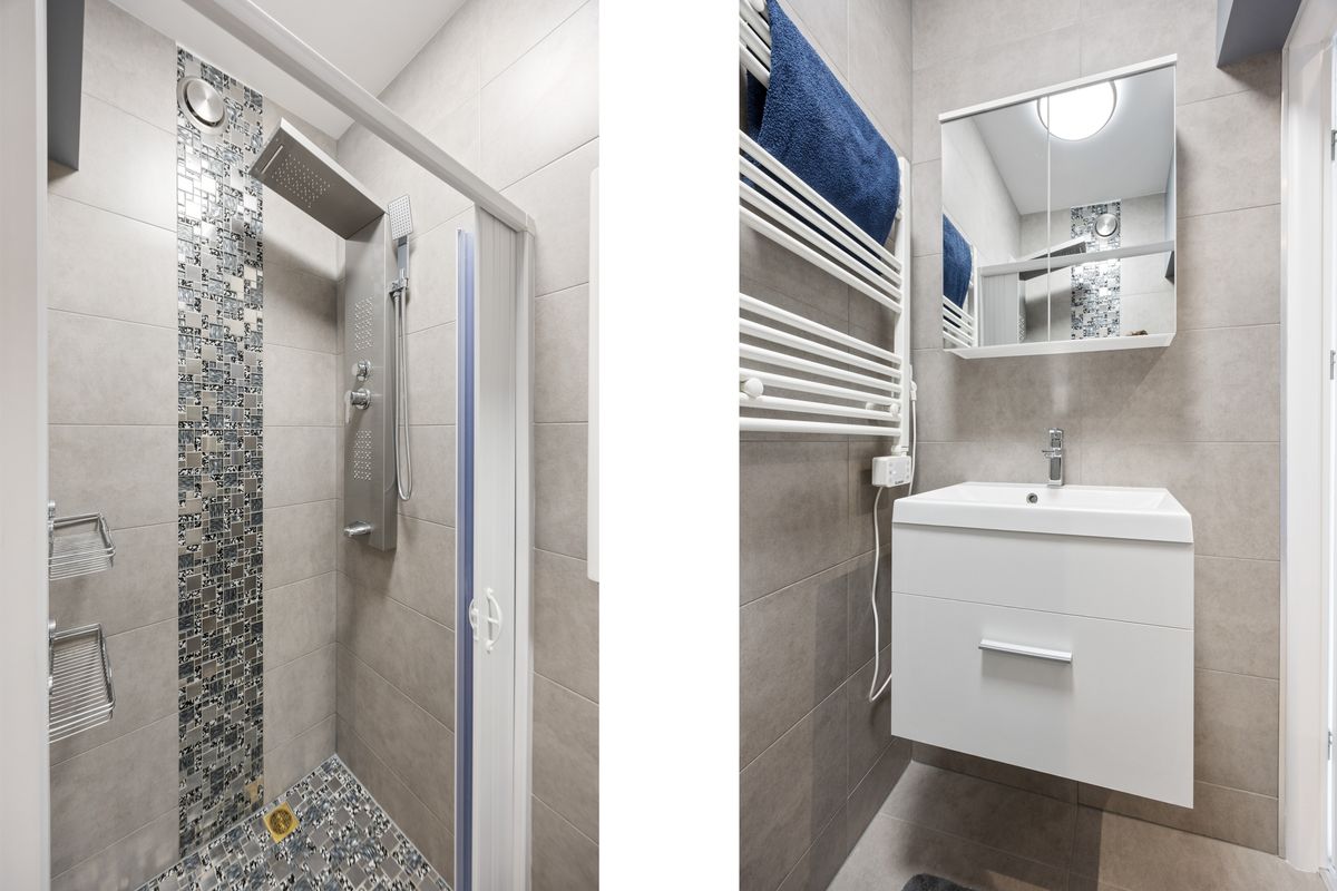 Vanuit de keuken heb je toegang tot de badkamer die dit jaar volledig gerenoveerd is. De badkamer is strak afgewerkt en voorzien van een nette douchecabine, wastafel met meubel en een spiegelkast erboven en een designradiator. Het separate toilet bevindt zich apart van de badkamer en maakt de indeling praktisch voor dagelijks gebruik.