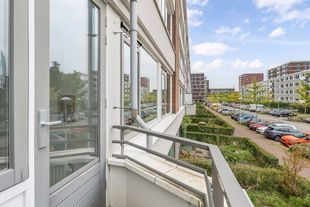 De twee balkons vormen een verlengstuk van uw woongenot. Perfect voor een rustig ontbijt of een ontspannen avond buiten. Achter het complex ligt een afsluitbare groene binnentuin.