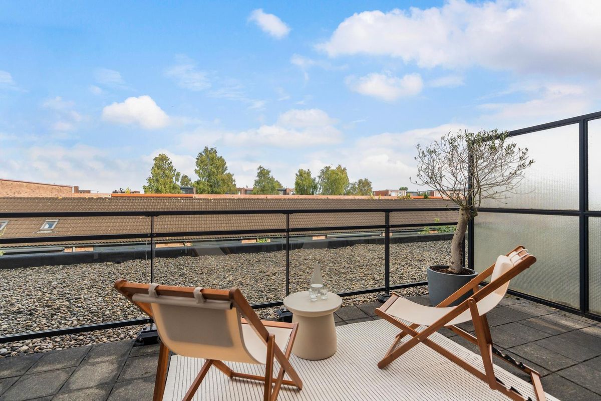 Op deze verdieping bevindt zich een royale slaapkamer aan de voorzijde. Aan de achterzijde ligt het dakterras, gelegen op het oosten en bereikbaar via de overloop.