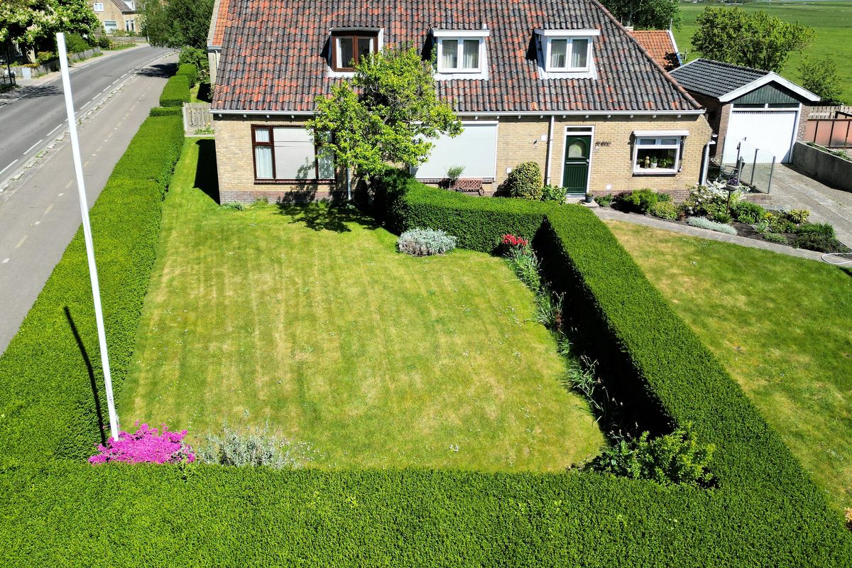 Langs de woning loopt een pad naar de royale achtertuin op het zuiden. Deze bijzondere buitenruimte is ideaal voor zonliefhebbers, moestuinhouders of rustzoekers: een plek met eindeloze mogelijkheden én een vrij uitzicht tot aan de Waddendijk. De tuin is ook bereikbaar via een oprit aan de achterzijde en dus goed met de auto bereikbaar. Ook is er een stenen garage aanwezig welke via de oprit op het naastgelegen perceel bereikbaar is en waarvoor een recht van overpad geldt. De garage beschikt over krachtstroomaansluiting.