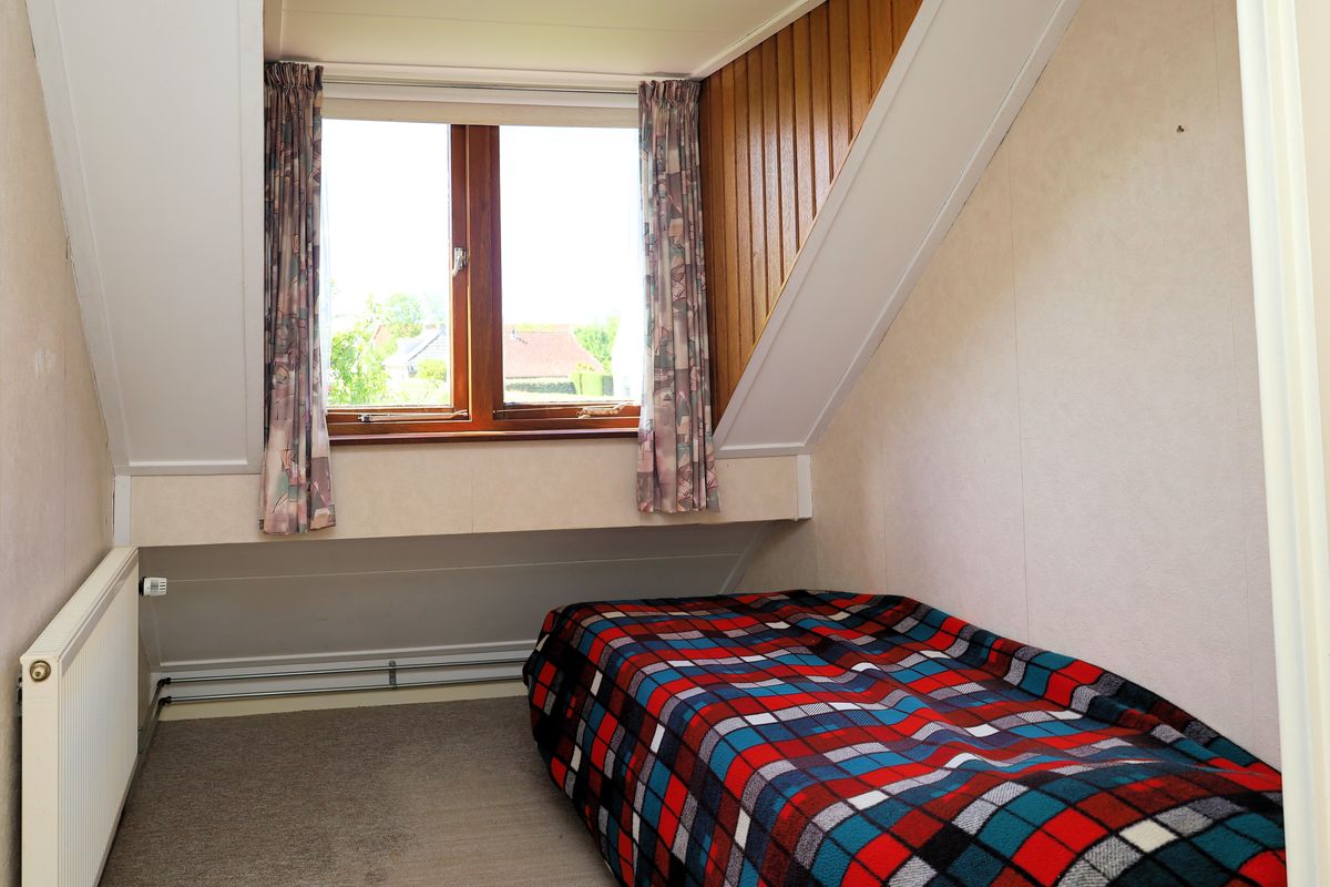 De ruime bijkeuken met bovenverdieping biedt volop praktische mogelijkheden en extra bergruimte. Op de eerste verdieping zijn drie slaapkamers te vinden, allemaal voorzien van knieschotten en inbouwkasten voor extra opbergruimte. Twee slaapkamers hebben bovendien een wastafel met warm & koud water. Dankzij twee dakkapellen is de bovenverdieping voldoende licht en ruim. Boven de overloop bevindt zich een praktische vliering.