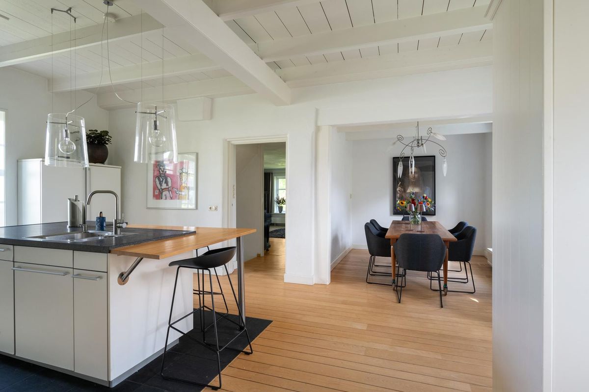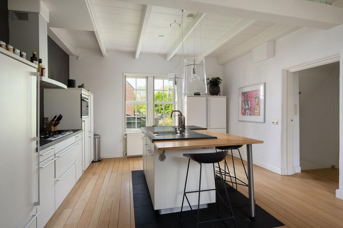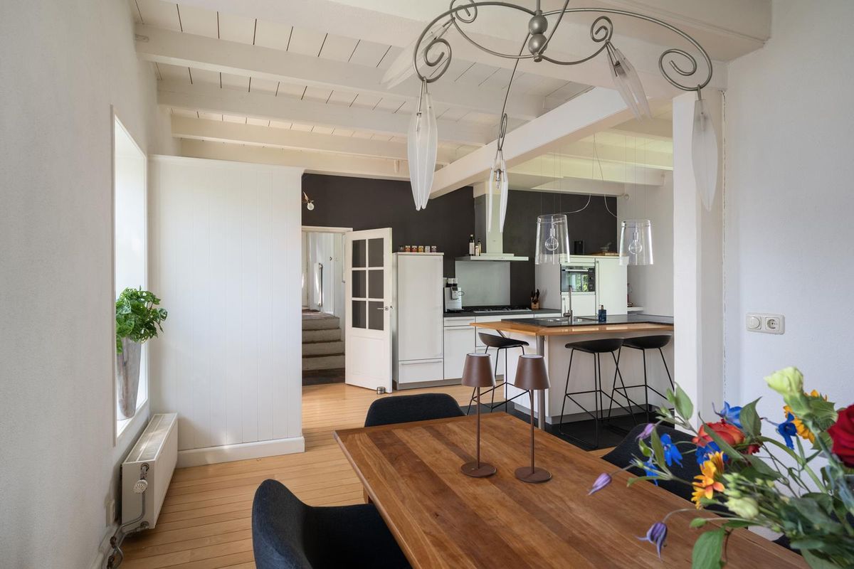 Binnen ervaar je een fijne mix van authentieke details en modern wooncomfort. Het balkenplafond, de niveauverschillen en de charmante raampartijen zorgen voor een unieke sfeer, terwijl de afwerking licht, strak en eigentijds is. De ruime woonkeuken vormt het hart van de woning: de plek waar wordt gekookt, gelachen en lang getafeld. De woonkamer is knus en uitnodigend, ideaal voor een avond bij de haard.