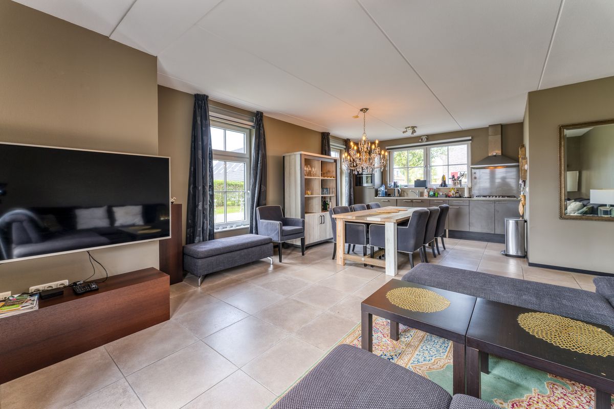 Bij binnenkomst voelt de woning warm en uitnodigend aan. De hal geeft toegang tot alle ruimtes op de begane grond en leidt u naar de lichte woonkamer. Grote raampartijen halen het daglicht rijkelijk naar binnen, terwijl de openslaande deuren een directe verbinding vormen met het terras en de tuin. Hier verdwijnen binnen en buiten bijna naadloos in elkaar.