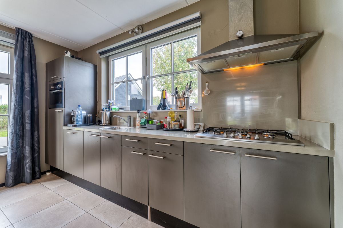 De open keuken grenst aan de woonkamer en is een heerlijke plek om samen te koken en te tafelen. Voorzien van onder andere een 5-pits gaskookplaat, combimagnetron, koelkast met vriesvak en vaatwasser, vindt u hier alles om een diner of borrel tot een succes te maken – terwijl u altijd contact houdt met uw gezelschap.