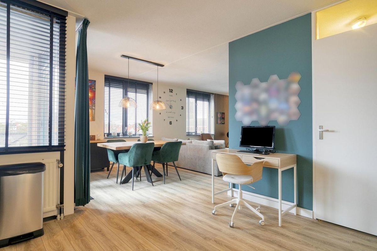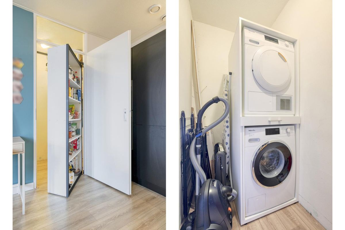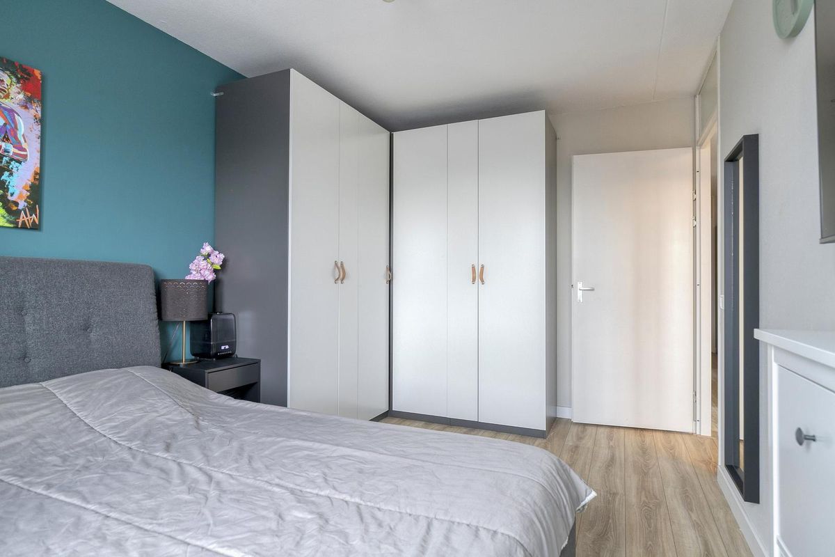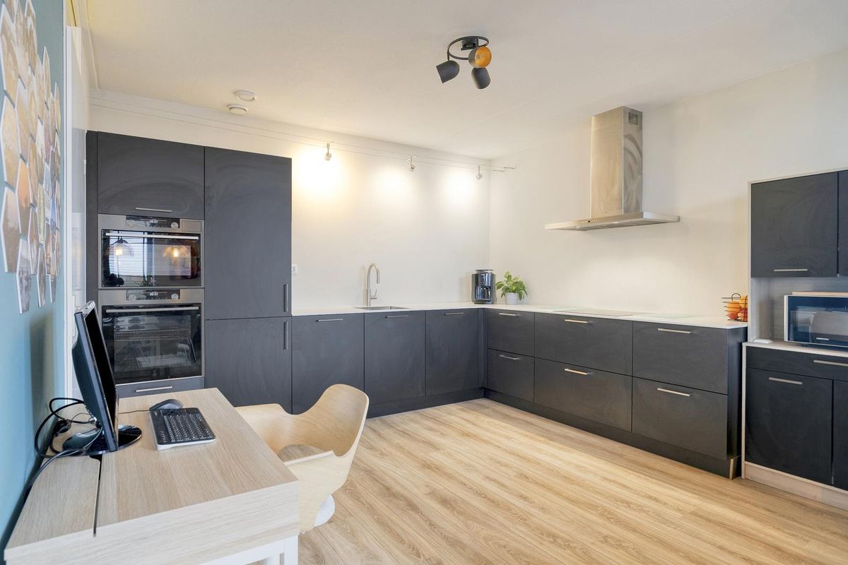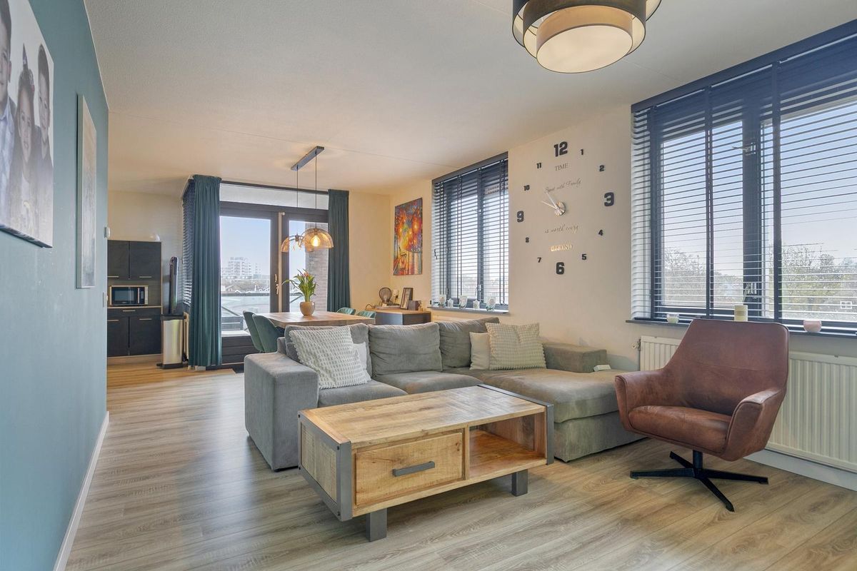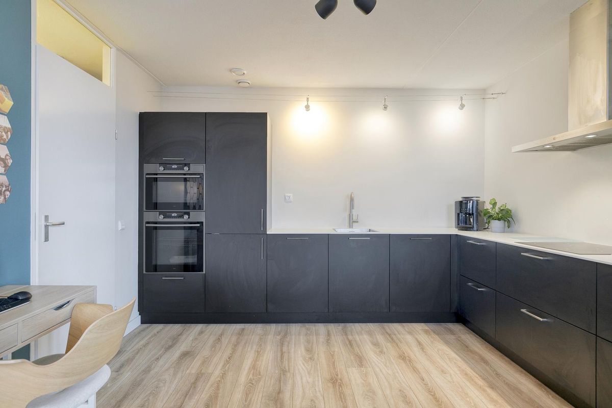Via de hal betreed je de lichte en royale living met aangrenzend de open keuken waar je de fijne indeling en het uitzicht echt kan zien en voelen. De living is van een fraai formaat en mede door het uitzicht en het aangrenzende balkon heeft het je een waar ruimtelijk gevoel. Een fraaie zithoek en voldoende ruimte voor een ruime eettafel. Een leuk detail is de sfeervolle sierhaard (ter overname) in de woonkamer en geeft net de extra touch aan deze living. Het balkon is van een goed formaat en is ideaal gelegen op het zonnige Zuidwesten. De moderne donkere keuken, welke is voorzien van een prachtige hoekopstelling en fraai werkblad is ook voorzien van een kookplaat met afzuigsysteem, koel/vriescombinatie, oven, combi-oven en Quooker. Hier kan je heerlijk alleen of met vrienden kokkerellen en borrelen. Vanuit de keuken is de interne berging met wasruimte en opstelling van de cv-ketel (bouwjaar 2019) te bereiken. Ideaal als verlengstuk van je keuken en met de extra inbouwkast perfect te gebruiken als voorraadkast!