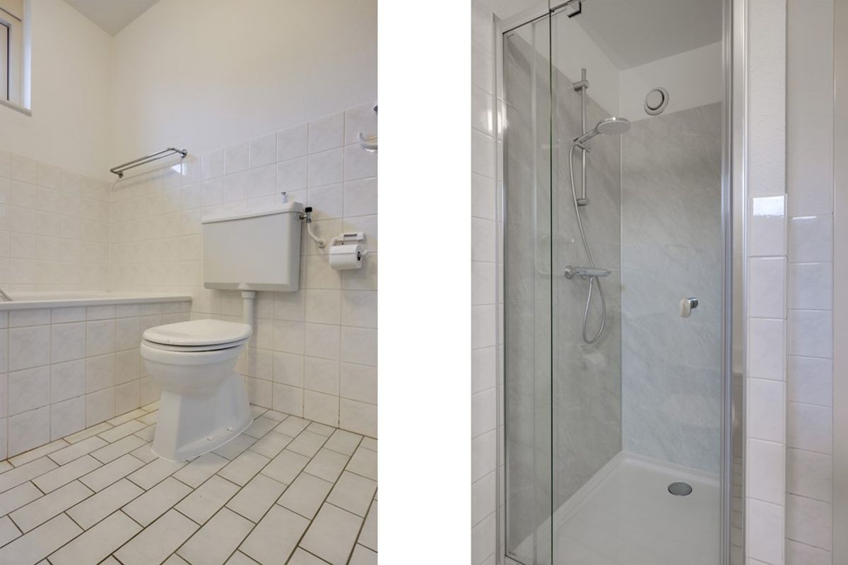 De badkamer is voorzien van een toilet, wastafel, ligbad en douche. Hier ontspan je na een lange dag en kom je helemaal tot rust.