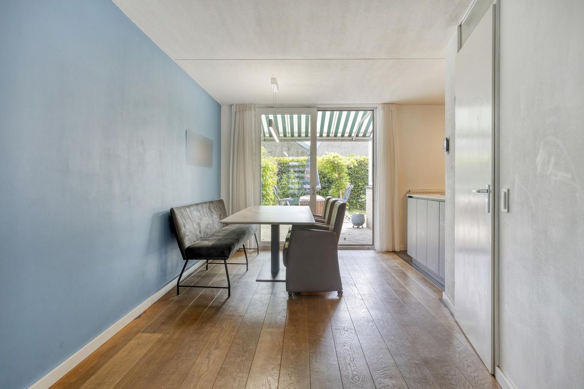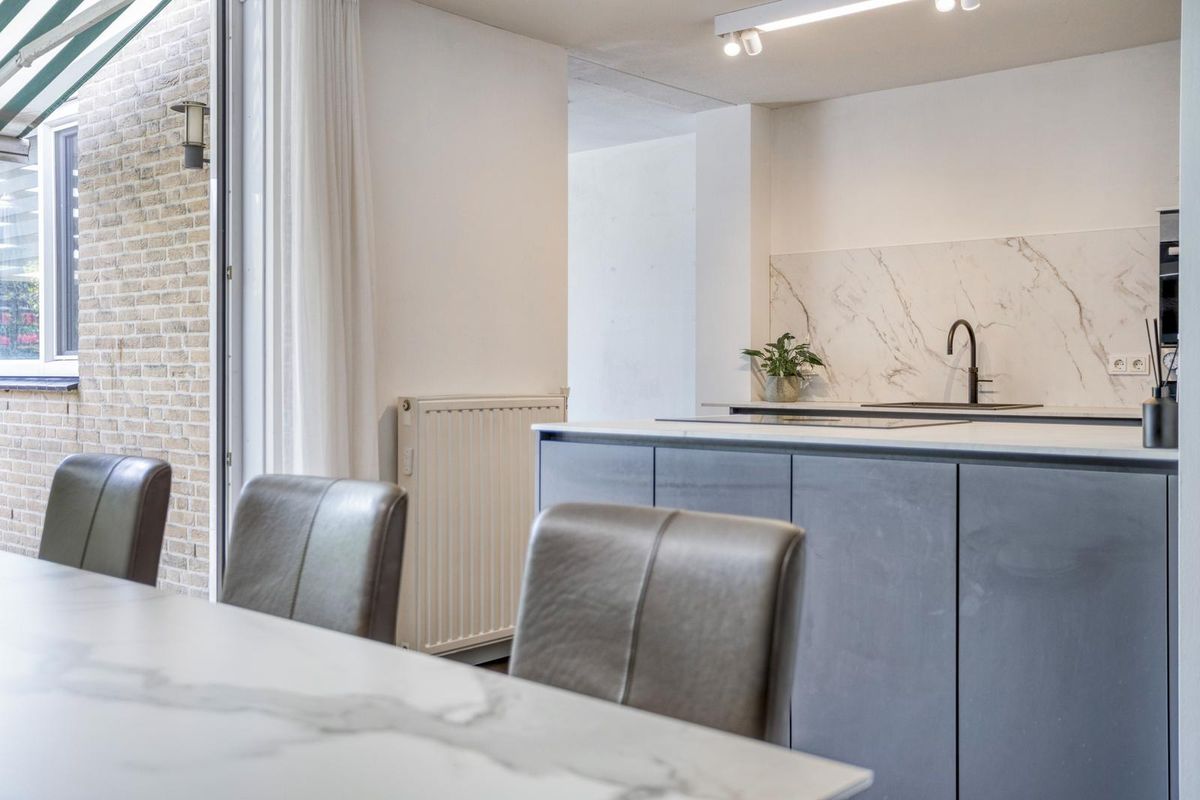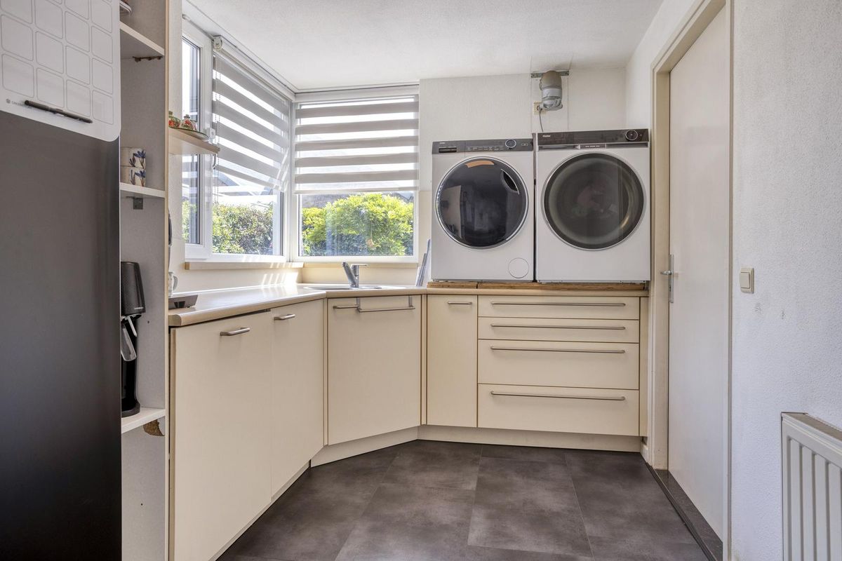 Je komt de woning binnen in de royale hal met trapopgang naar de eerste verdieping, meterkast en toilet. De ruime woonkamer heeft een fraaie massief eiken vloer en biedt dankzij de schuifpui directe toegang tot de fijne achtertuin. De keuken is in 2022 volledig vernieuwd en uitgevoerd met een kookeiland en alle denkbare inbouwapparatuur. Aansluitend bevindt zich de praktische bijkeuken met extra keukenblok en witgoedaansluitingen. De voormalige garage is momenteel in gebruik als salon, maar kan eenvoudig weer als garage in gebruik genomen worden.