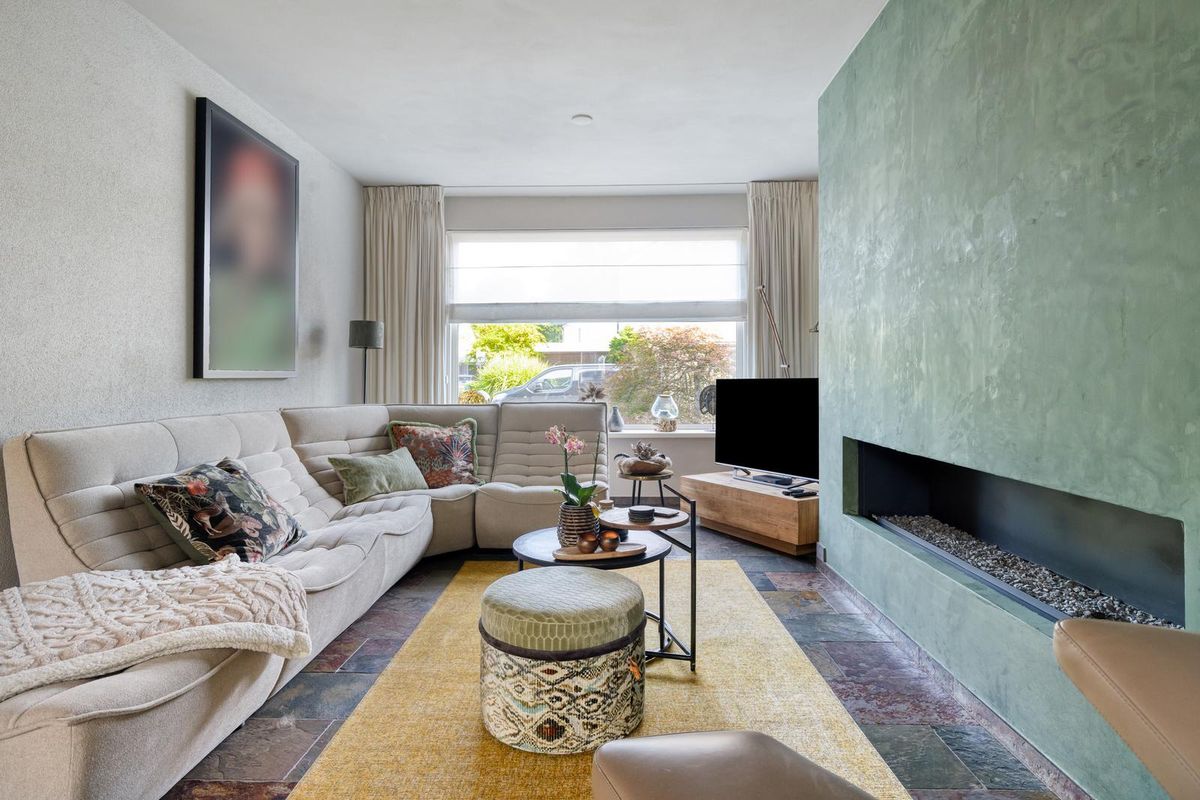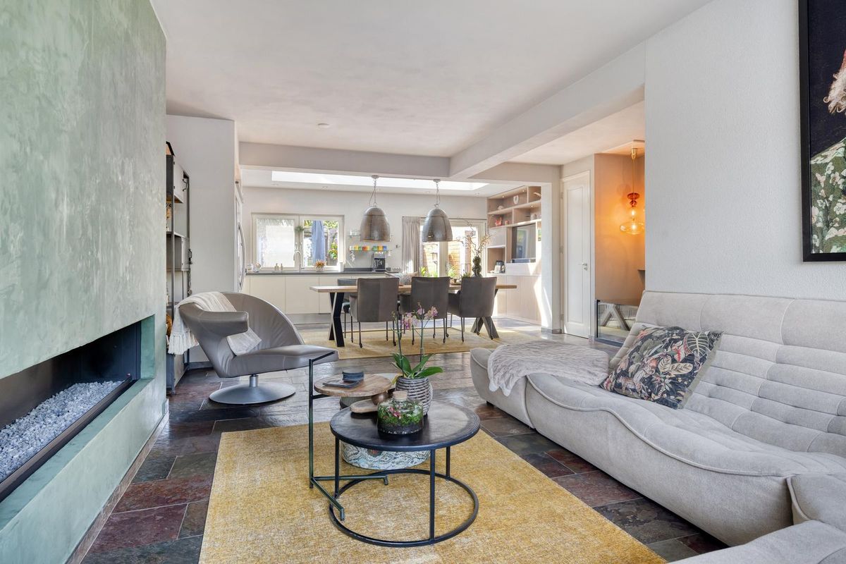 - Royale woonkamer met openslaande tuindeuren en een sfeervolle gashaard