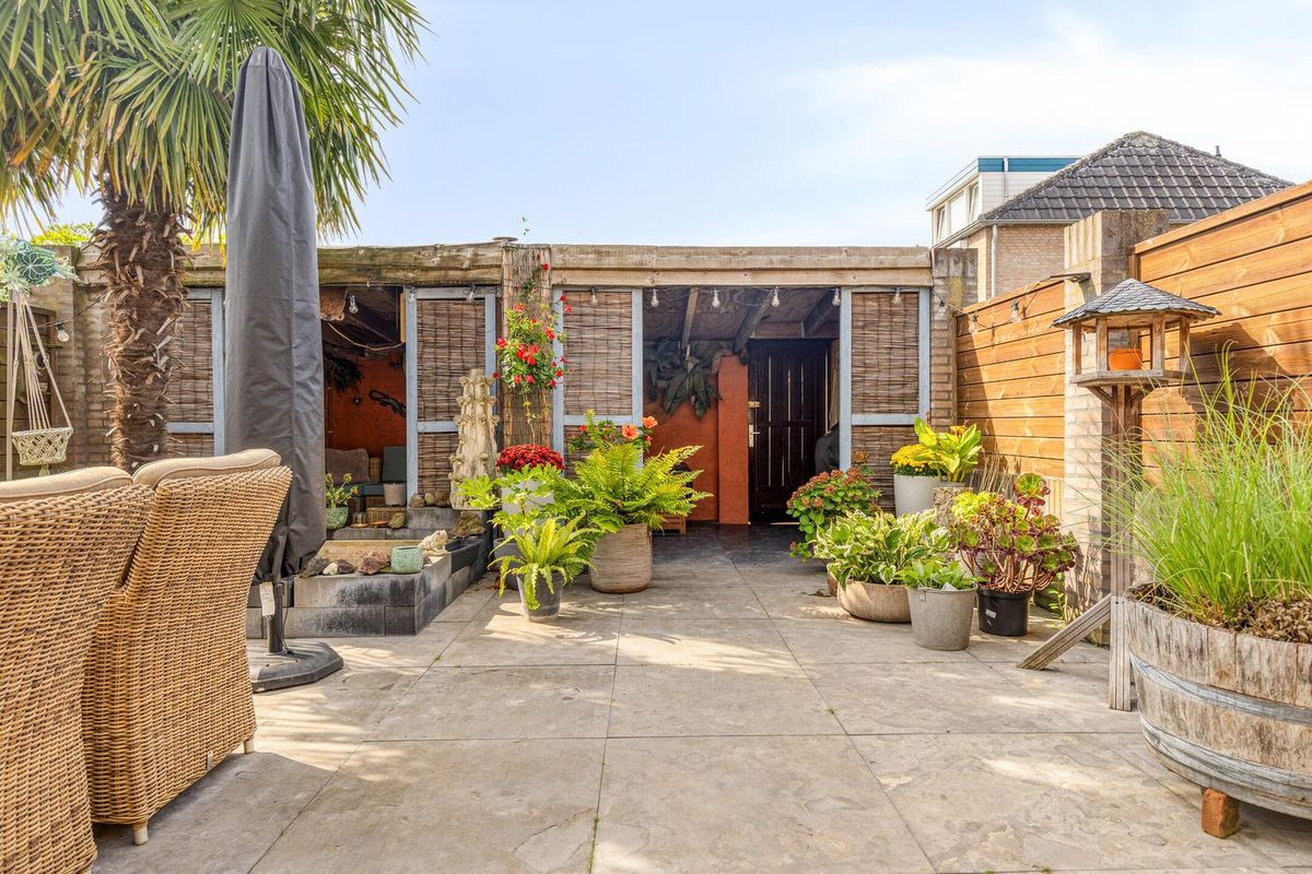 De achtertuin ligt op het westen en is volledig afgescheiden, met achterom. Hier kun je tot in de late uurtjes genieten van de avondzon. Extra praktisch is de vrijstaande garage met elektra. Deze is perfect voor hobby, opslag of parkeren.
