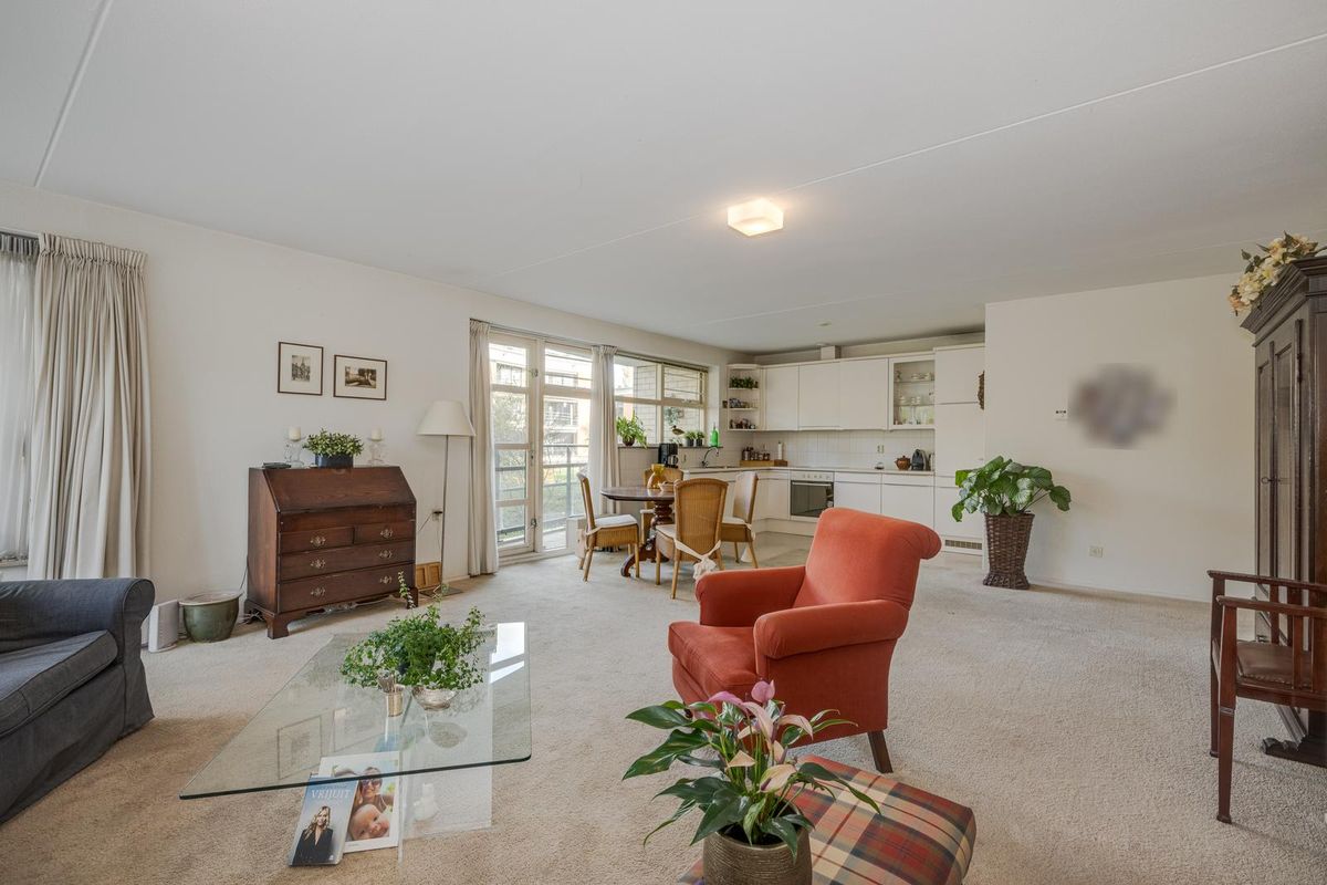 Dankzij de grote ramen van de woonkamer geniet u hier van veel licht en een prachtig vrij uitzicht over het groene privé park rondom het complex. Het appartement beschikt over een open keuken met diverse apparatuur.