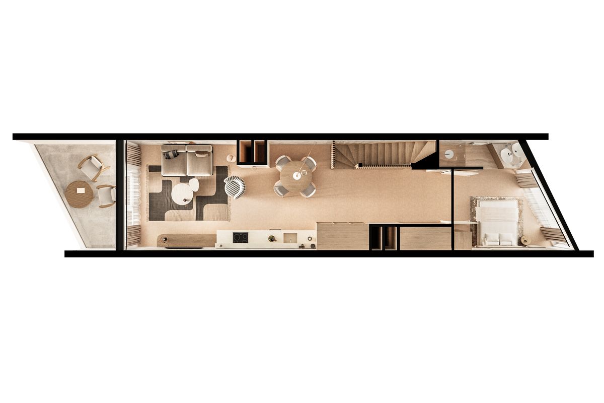 Appartement nummer 9 is een duplex appartement met een woonoppervlakte van 67m², geschikt voor 4 personen.