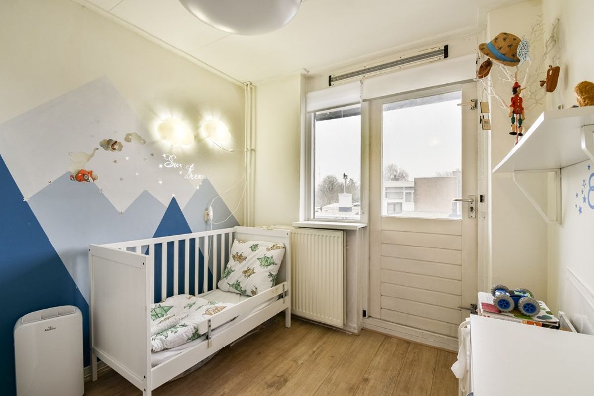 Vanaf de overloop toegang tot drie slaapkamers, de eerste badkamer en de trapopgang naar de tweede etage. De eerste slaapkamer bevindt zich aan de achterzijde van de woning, is voorzien van airconditioning en biedt toegang tot de inloopkast. Deze riante inloopkast is uitgerust met een douchecabine en wasmeubel. De tweede ruime slaapkamer is aan de voorzijde van de woning gelegen. Ook de derde slaapkamer op deze etage ligt aan de voorzijde en biedt toegang tot het inpandige balkon dat zich uitstrekt over de volledige breedte van de woning. Van hier is er een mooi uitzicht over de wijk en het naastgelegen speelpark. De eerste badkamer is uitgerust met een zwevend toilet met flexibele bidetslang, een douchecabine en een wasmeubel.