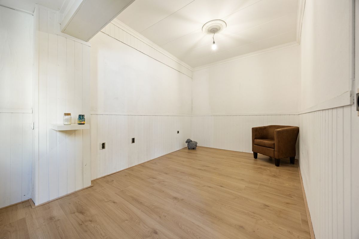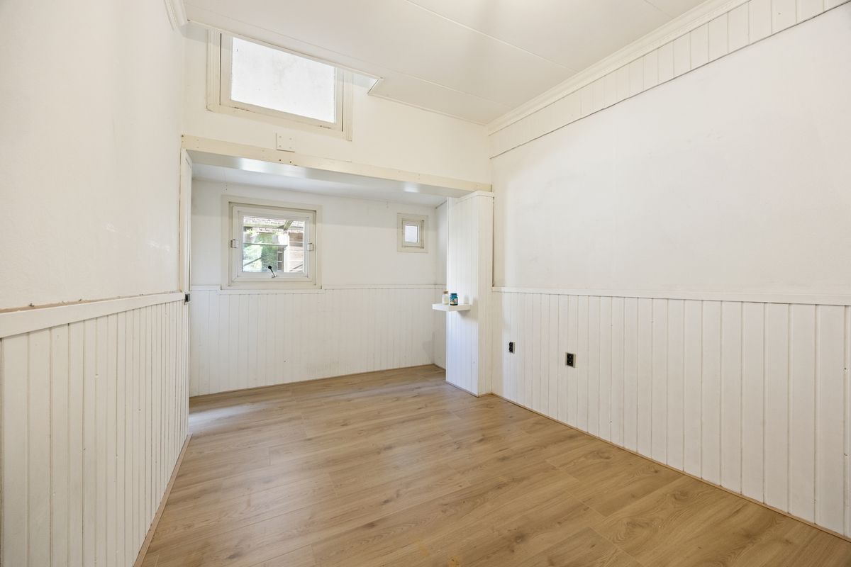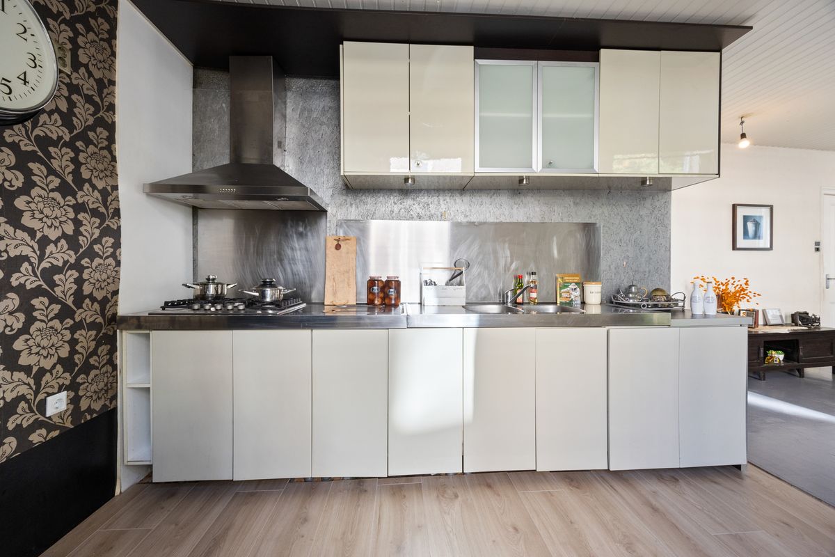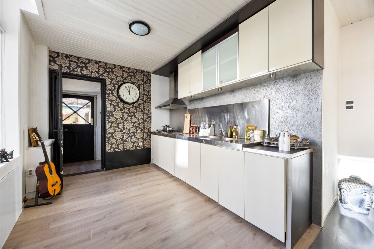 Aansluitend aan de woonkamer vind je de keuken aan de achterzijde. De keuken is eenvoudig, maar functioneel ingericht waardoor je veel mogelijkheden hebt om het compleet naar smaak in te richten. Of je nu kiest voor een moderne hoekkeuken, een stoere industriële look of zelfs een klein kookeiland: de ruimte leent zich uitstekend voor wat er bij jou past. Ook in de keuken is er een groot raam waardoor er veel daglicht binnenkomt.